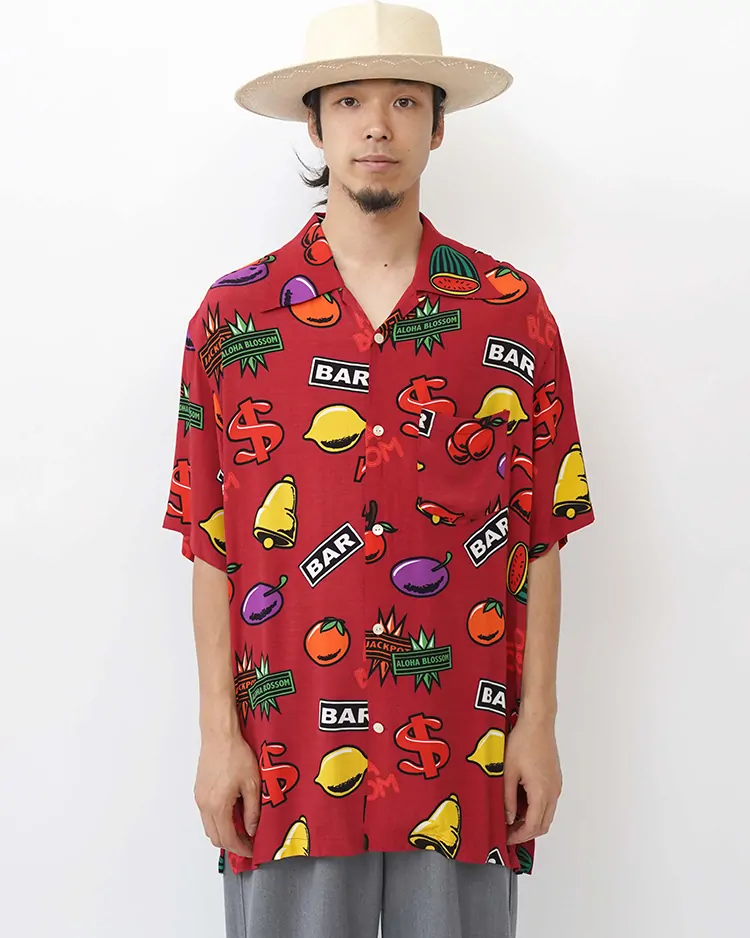 サラッとした肌触りで夏に最適なレーヨン生地を使用したアロハシャツ。