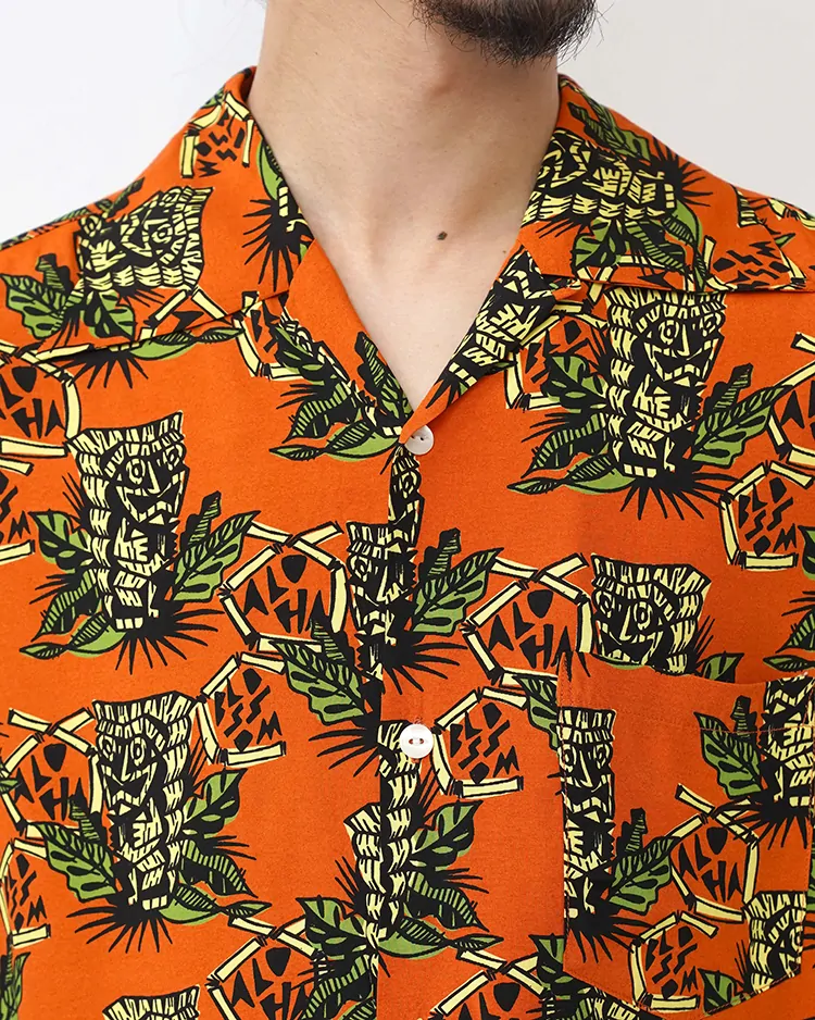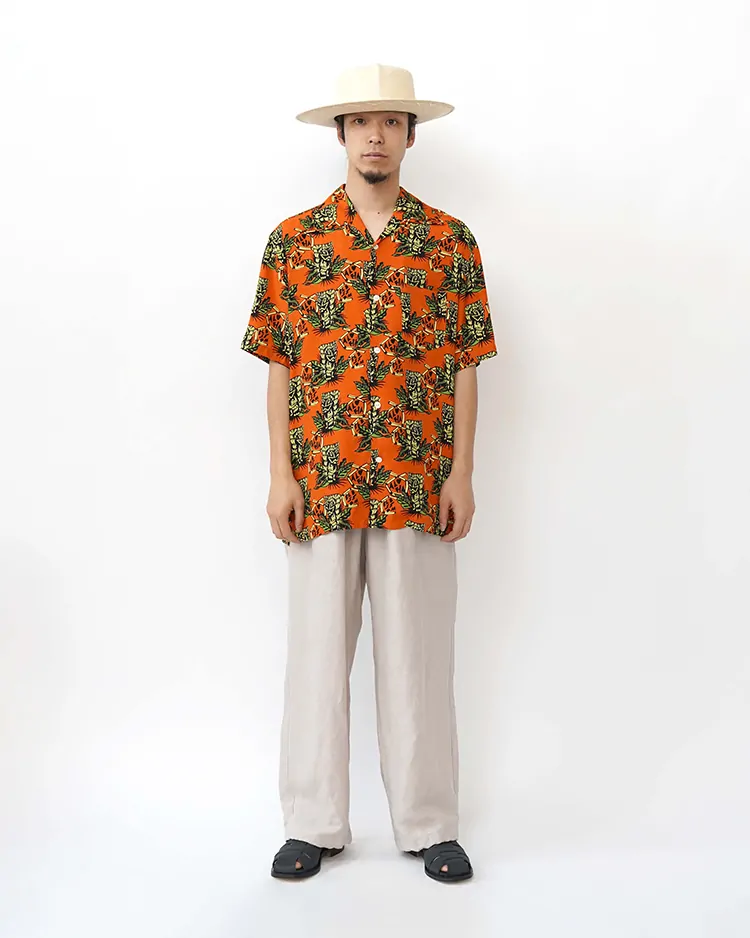サラッとした肌触りで夏に最適なレーヨン生地を使用したアロハシャツ。