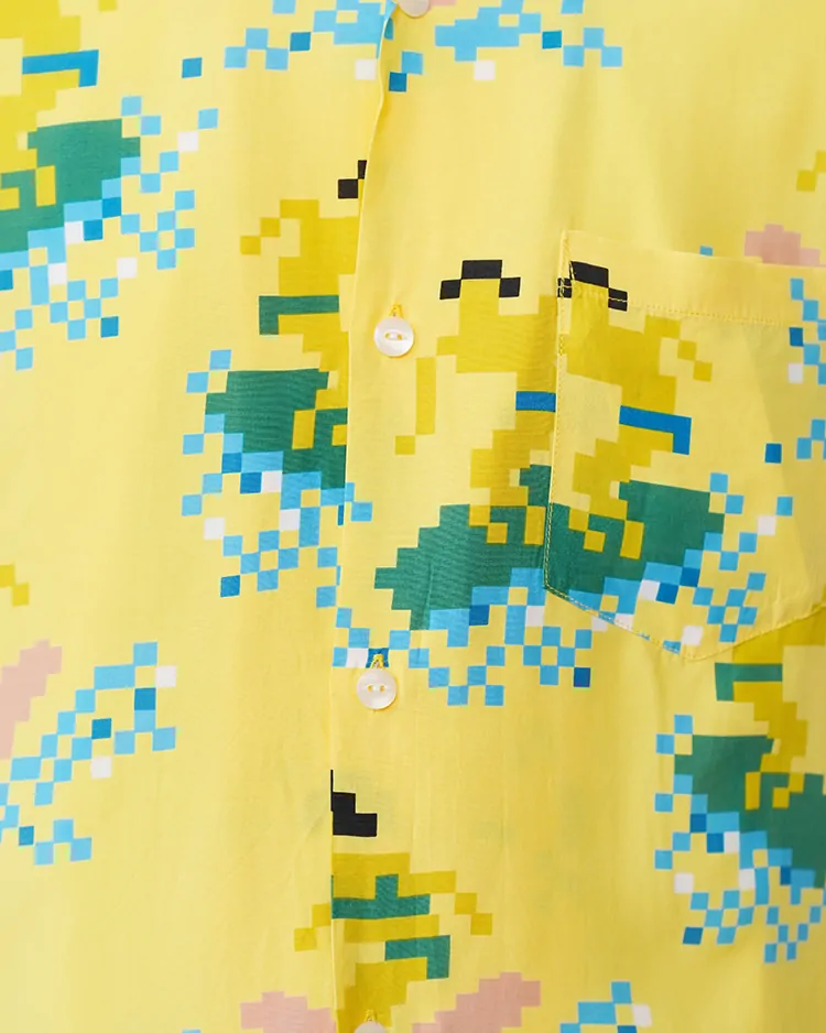 鮮やかなプリントが施されたレーヨン生地は、高品質なドレスシャツを製造する工場に送られ、シャツ職人によって丁寧に仕立てられています。