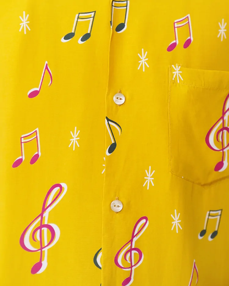 鮮やかなプリントが施されたレーヨン生地は、高品質なドレスシャツを製造する工場に送られ、シャツ職人によって丁寧に仕立てられています。