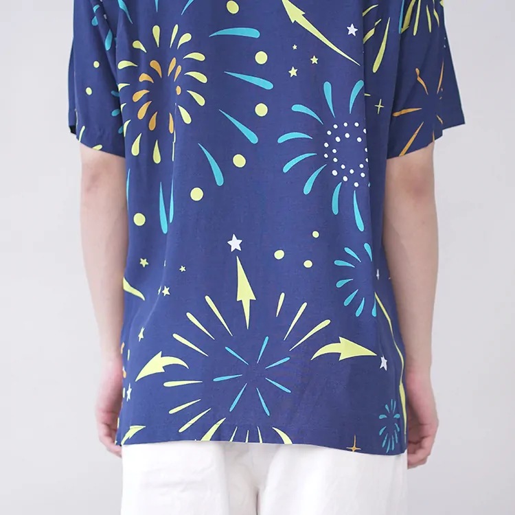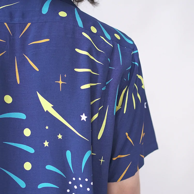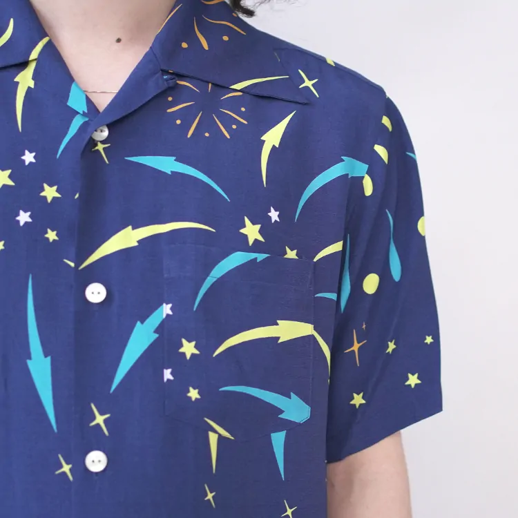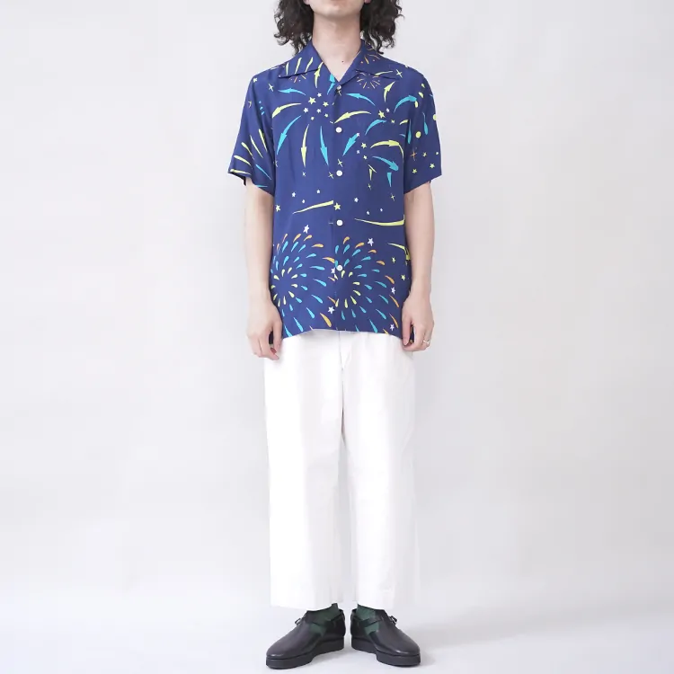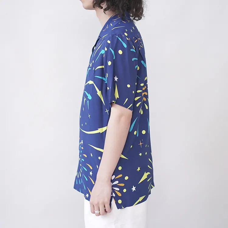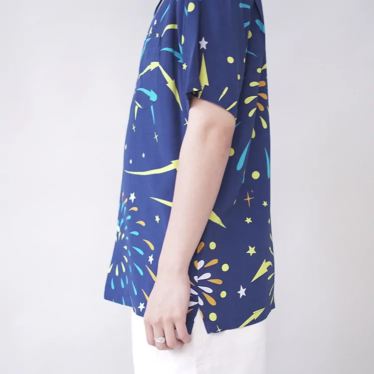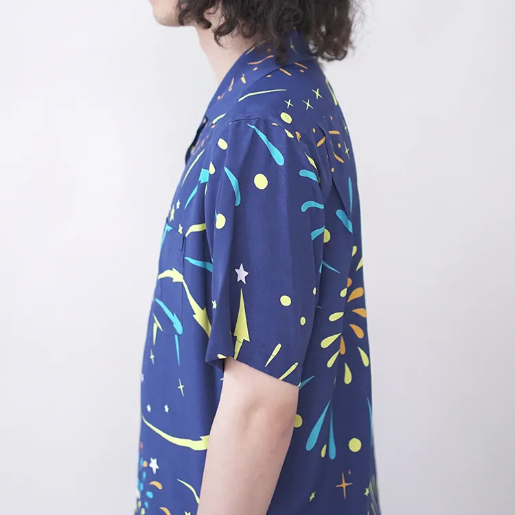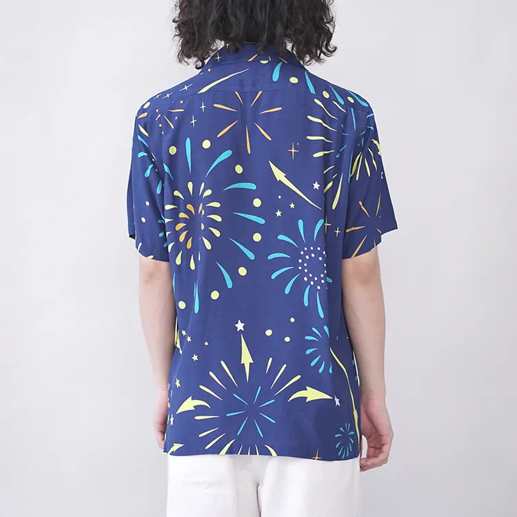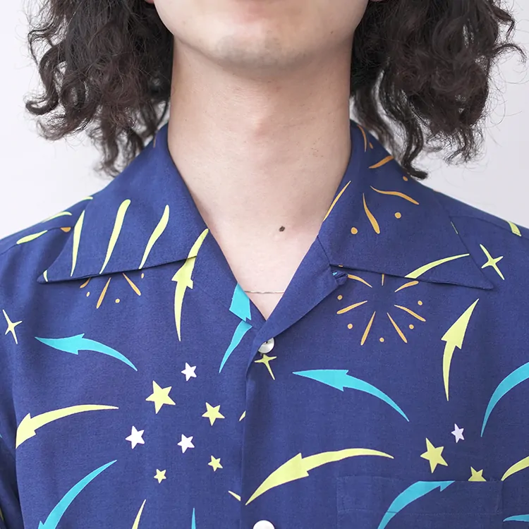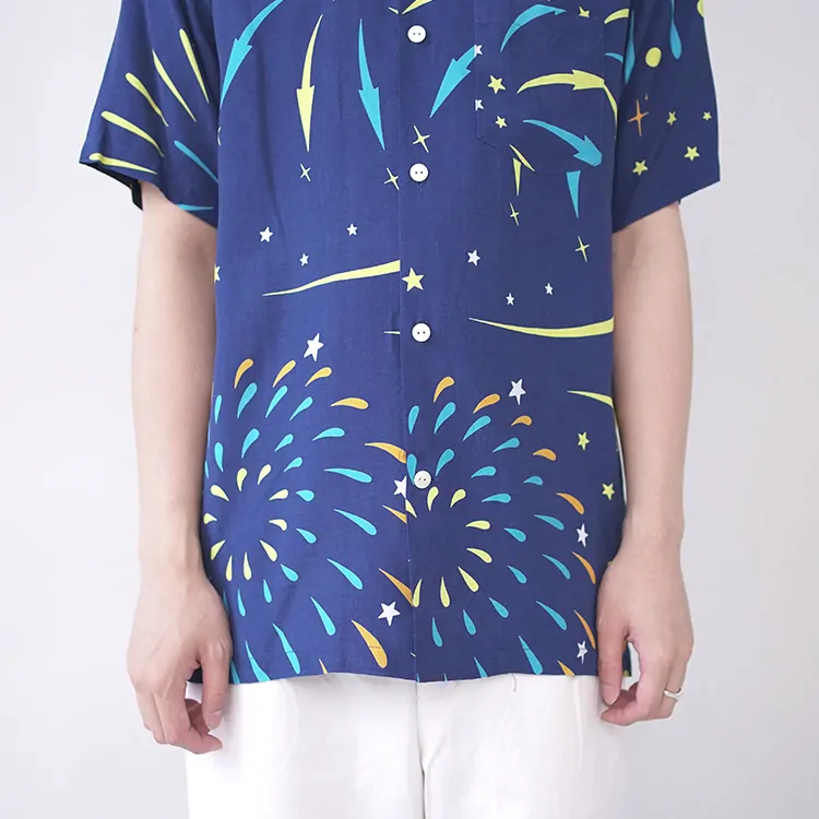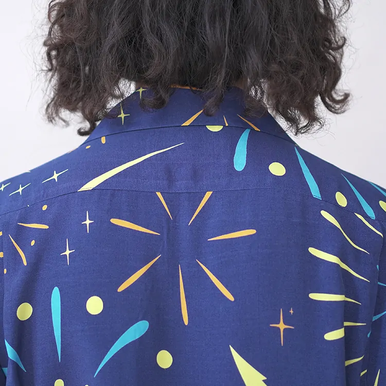 鮮やかなプリントが施されたレーヨン生地は、高品質なドレスシャツを製造する工場に送られ、シャツ職人によって丁寧に仕立てられています。