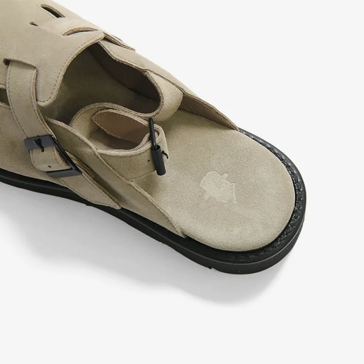 アッパーだけでなくインソールにもスエード素材を採用しているため滑りにくく、ヒールのストラップを付けることによりフィット感がアップしました。アウトソールはVibram社のEVAという軽量素材のタンクソールを使用し、疲れにくいうえ頑丈という特徴があります。