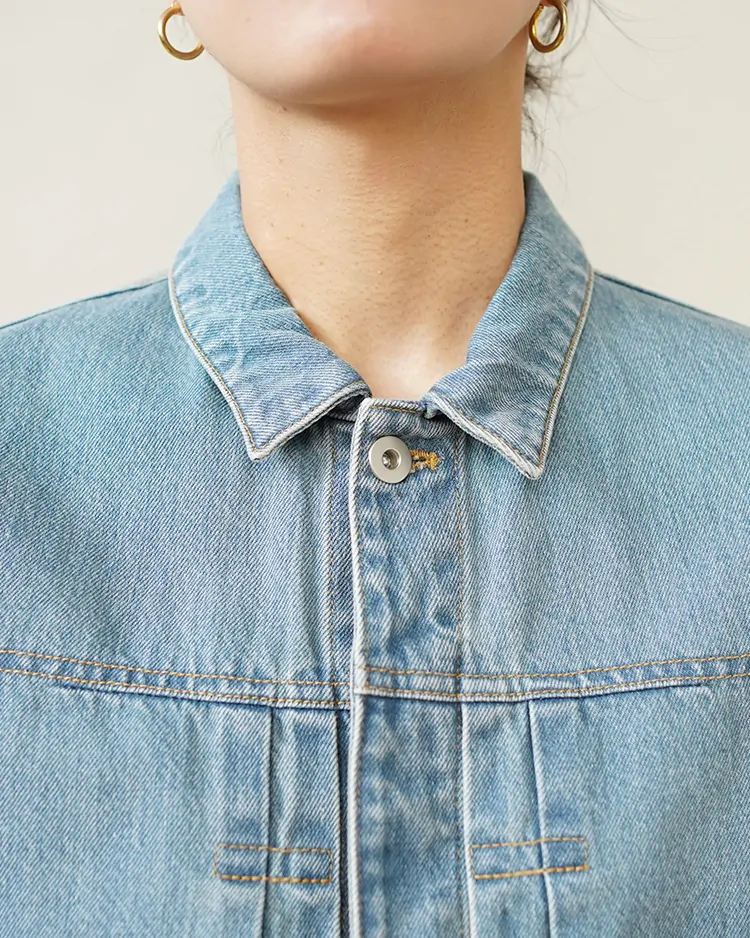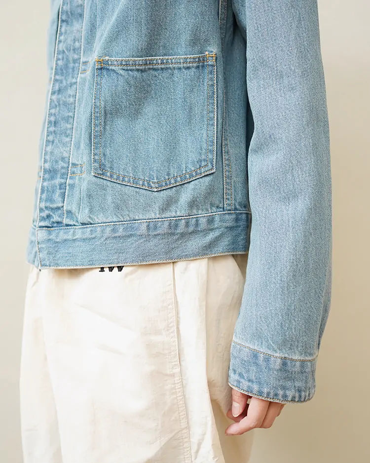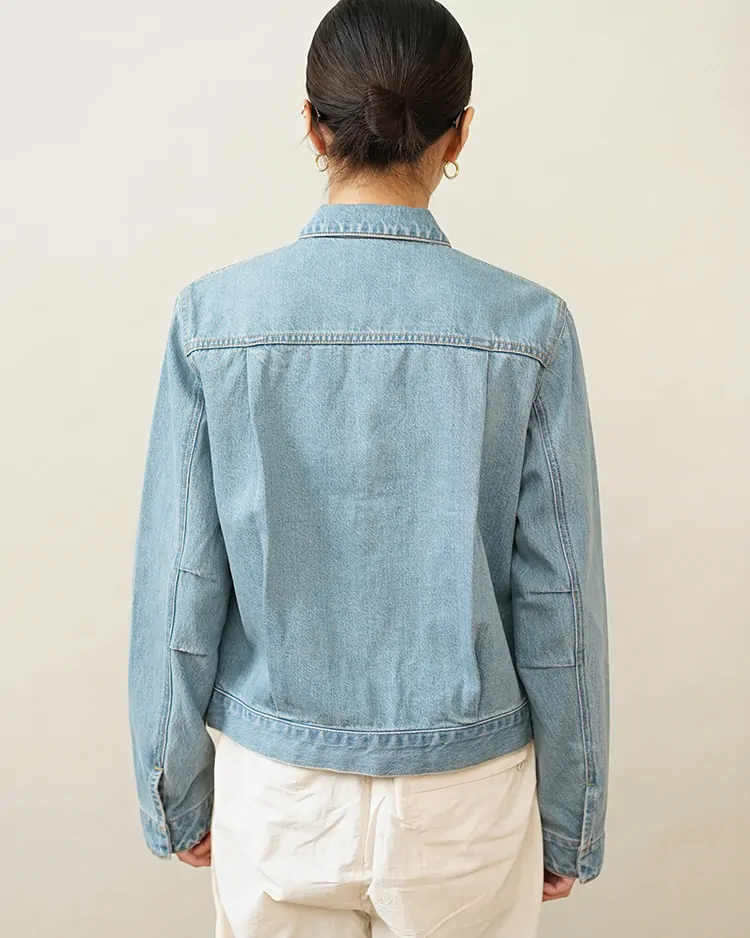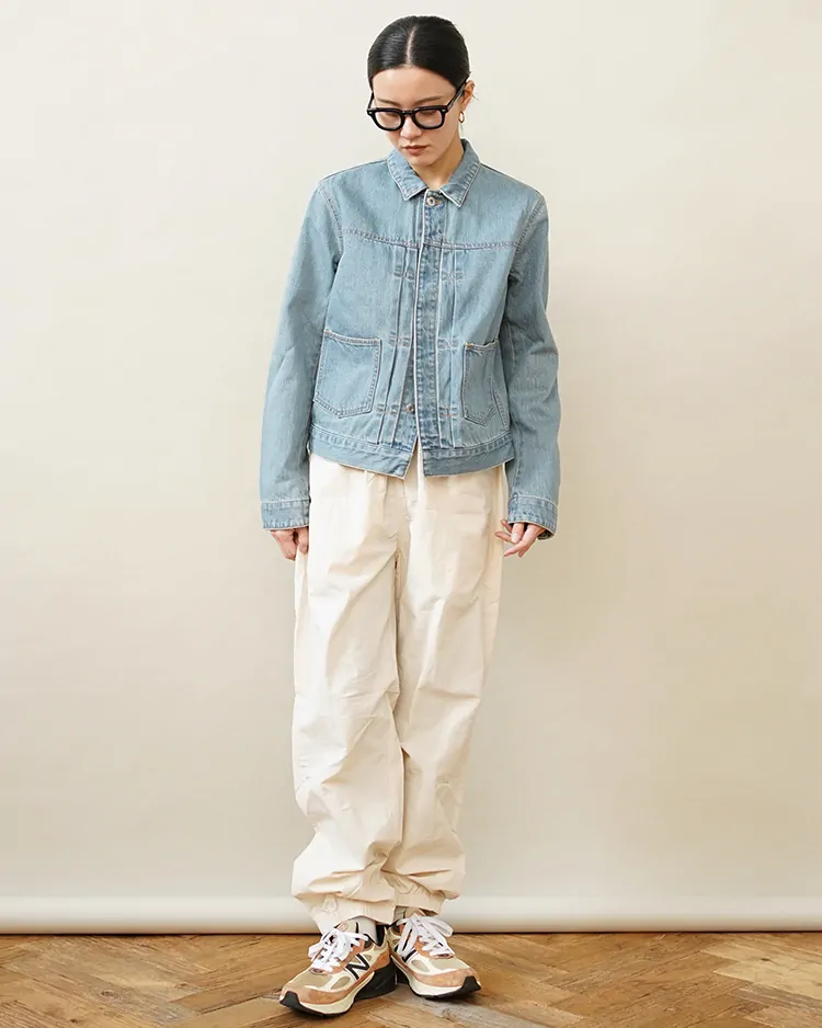 ヴィンテージのセカンドタイプを土台としつつも、日本製のオーガニックコットン100%生地を使い、軽く柔らかに仕立てた、現代の女性のライフスタイルに寄り添ったデザイン。
