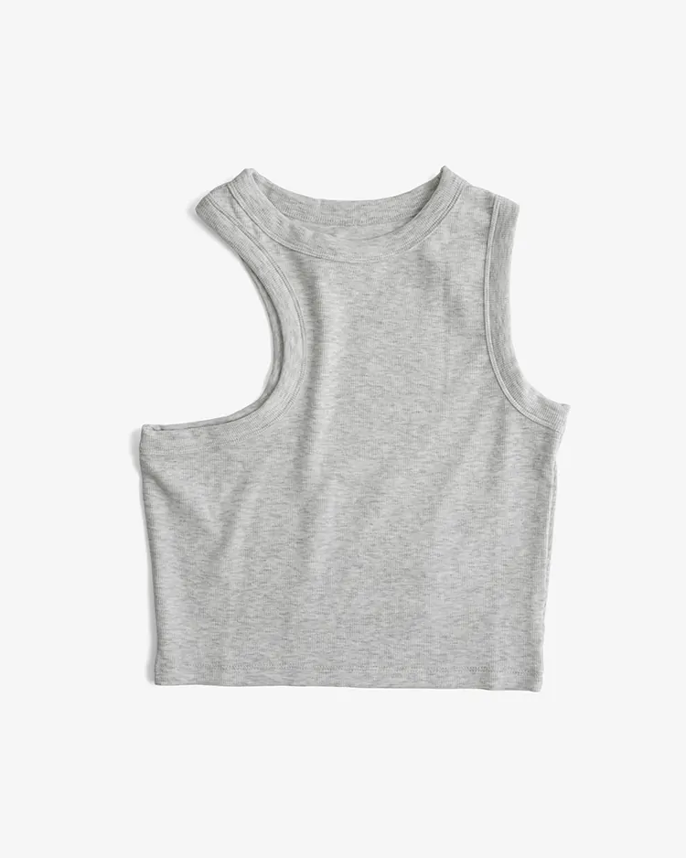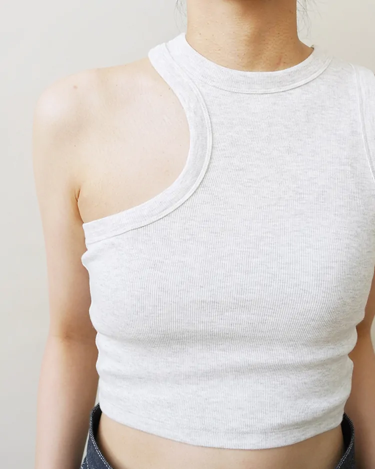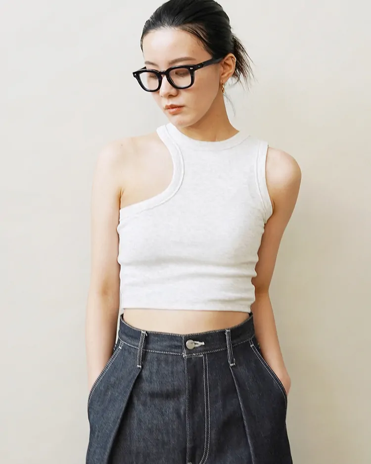 アシンメトリーなシルエットがキュートな何色も揃えたくなるデイリーユースなタンクトップ。