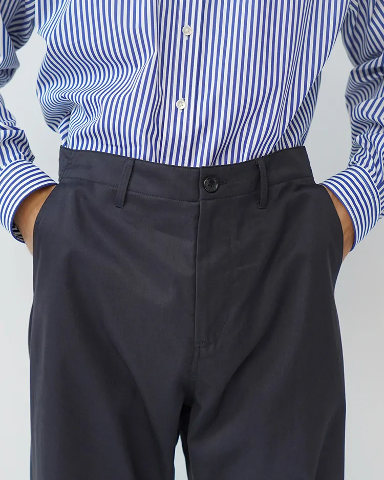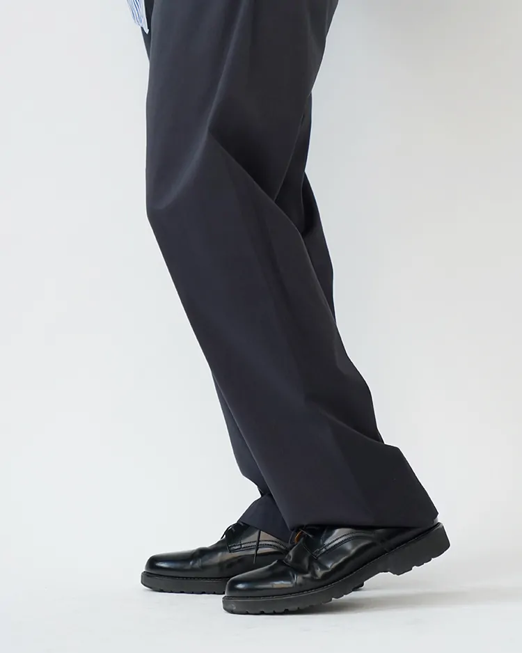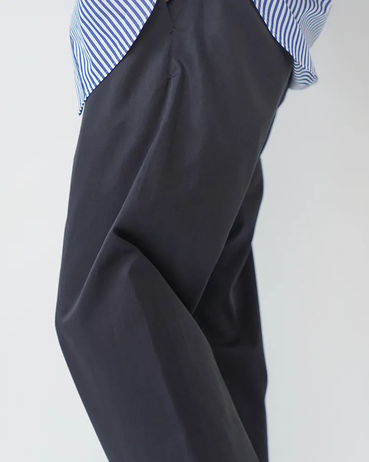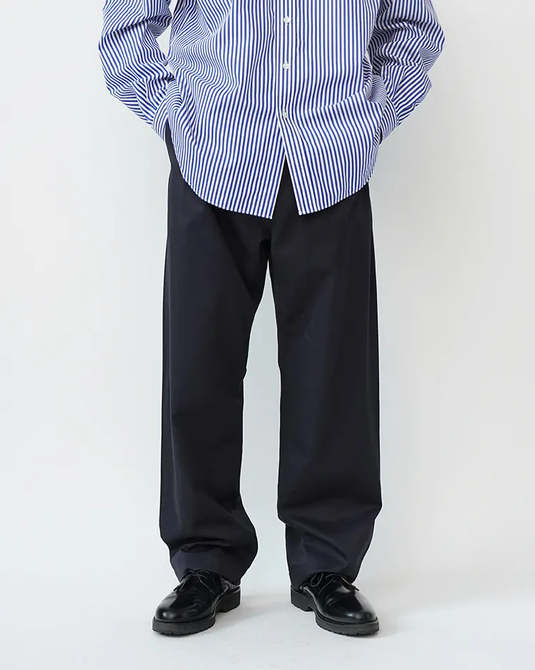 上質な生地を使用したスタンダードなチノパンツ。膝下から僅かにテーパードしたシルエットで、トップスやシューズを選ばず、どんな場面でも活躍する使い勝手の良いパンツです。生地は英国BRISBANE MOSS社製のブリティッシュピーチスキン生地を採用。上品な生地感と履き心地の良さが魅力です。