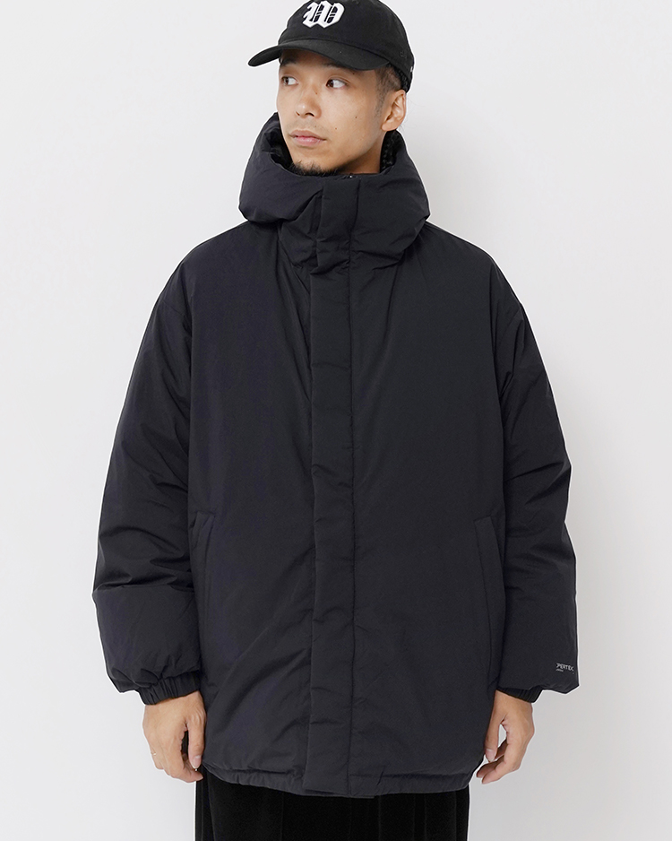 英国生まれのPERTEX(パーテックス)は1979年、英国の登山家が開発した極薄軽量かつ強靱なナイロン素材。ダウンジャケットの表生地に採用したPERTEX_SHIELDは防水性と高い透湿性を保持しながら軽さと柔軟性にも長けた最適な衣類内環境を作り出す素材。過度なディテールを削ぎ落としたミニマルなデザインで裏返しても使えるリバーシブル仕立て。裏面に用いた高密度ナイロンタフタは優れた耐久性を持ち、さり気ない艶感が表面とはまた違った印象を見せてくれる。