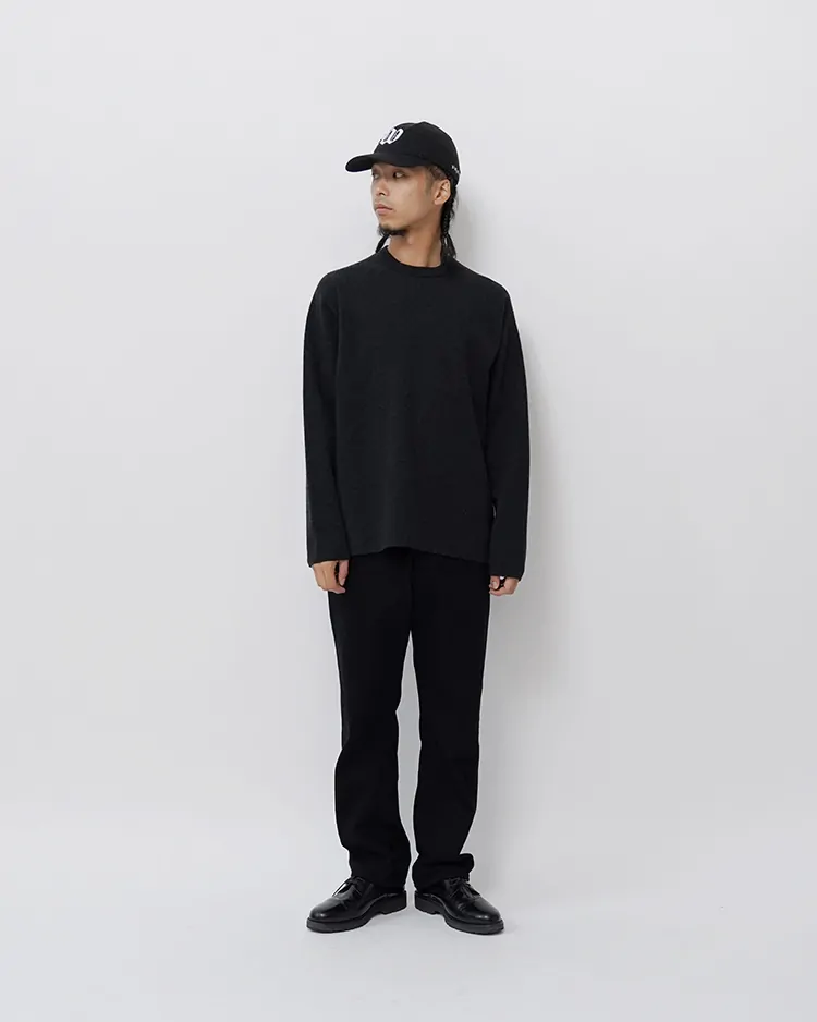 着用を重ねても柔らかな風合いを保ちつつ、目が詰まっているため弾力を持ち型崩れしにくい生地感が特徴です。