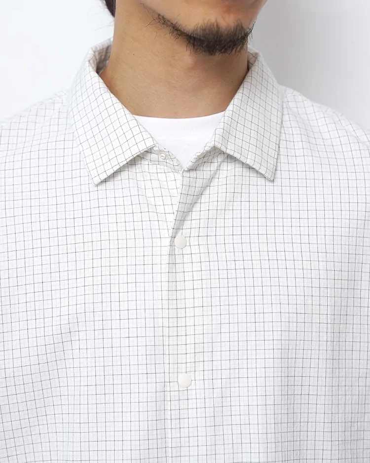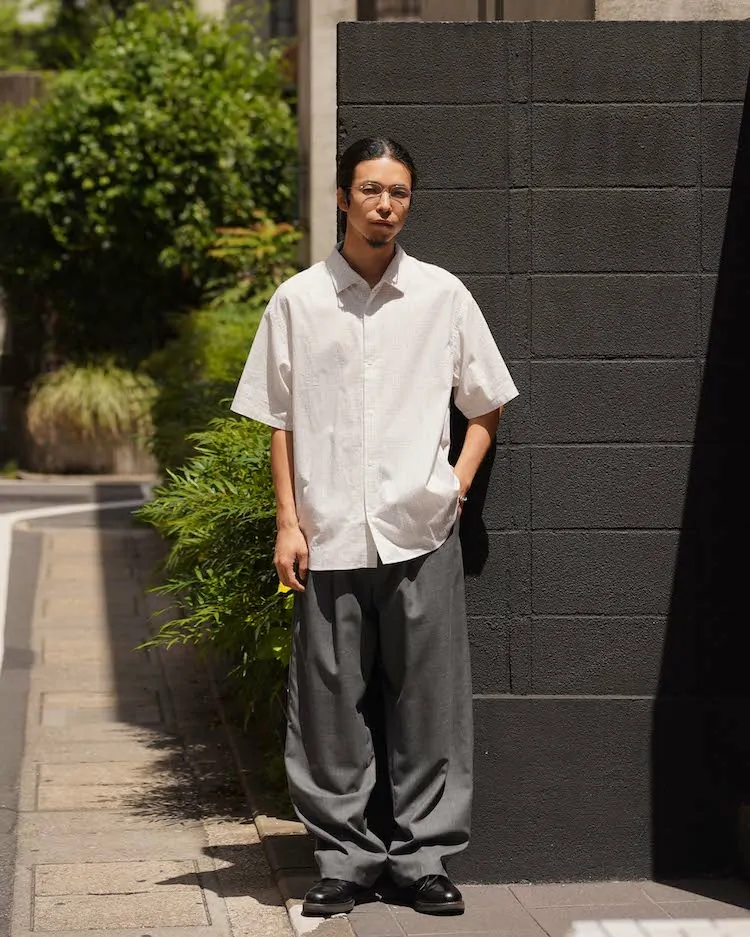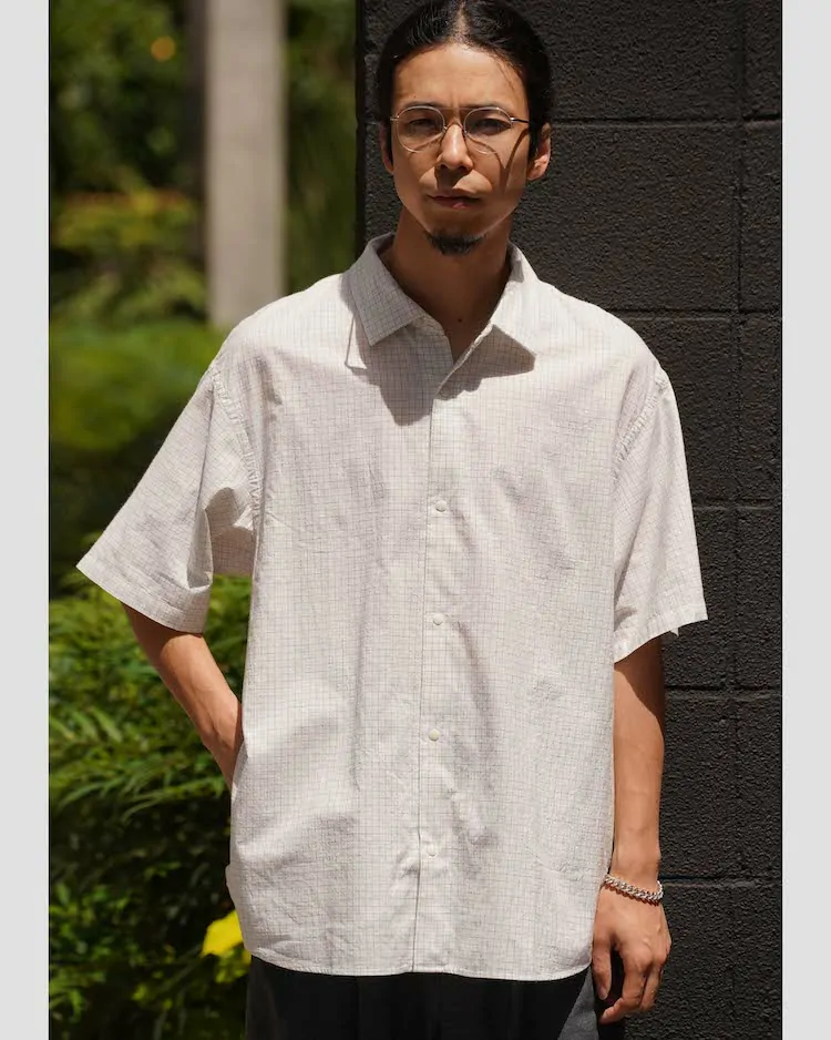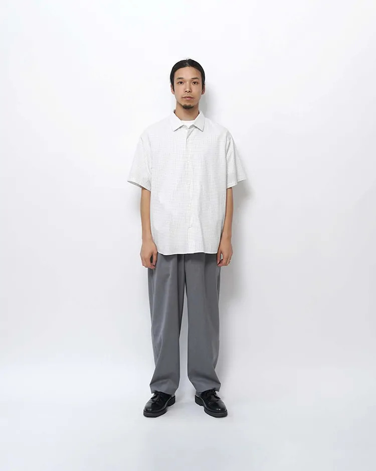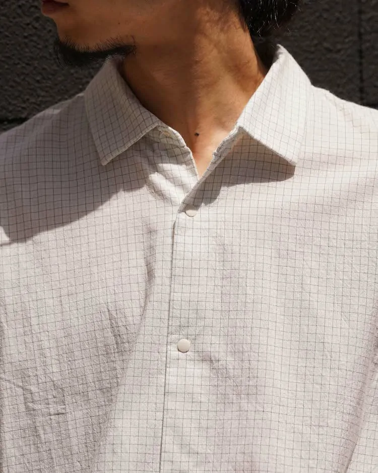 タッタソール柄のコットン生地を使用し、ノンアイロン・洗いざらしでも着られるように、あえて粗野に仕上げています。