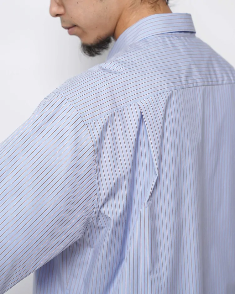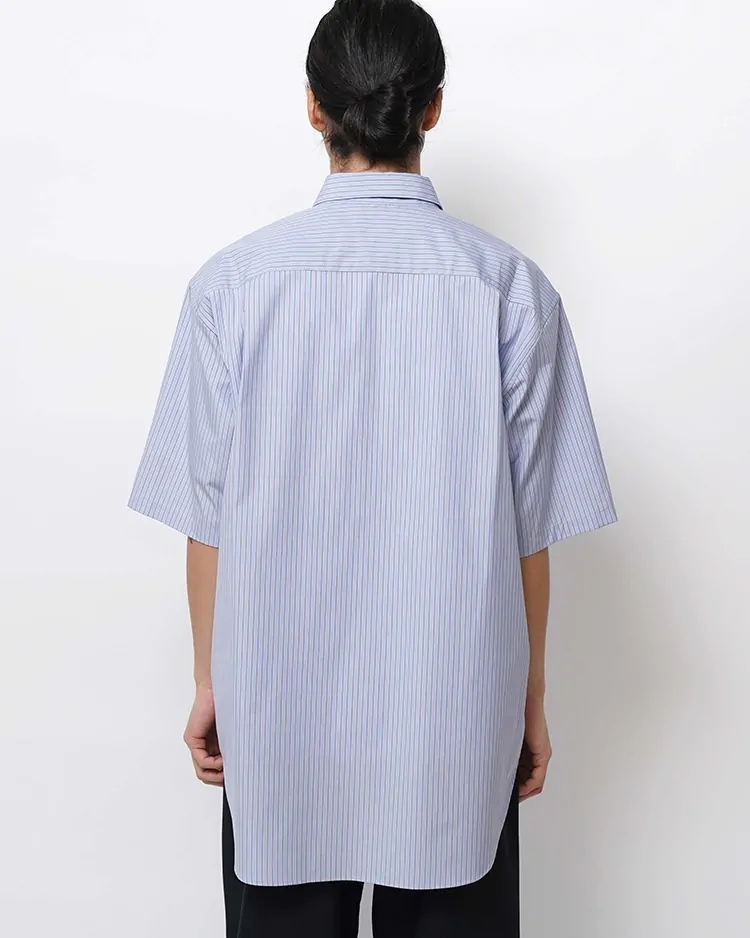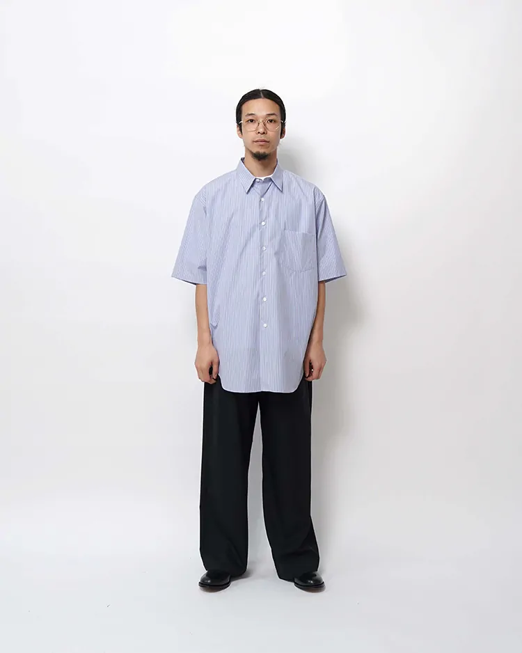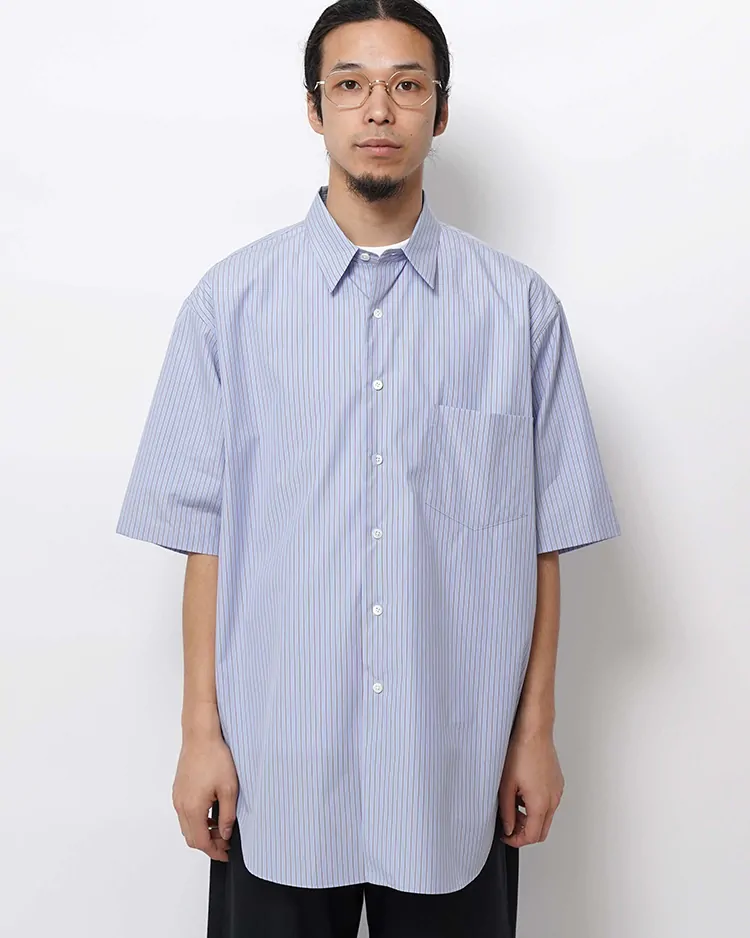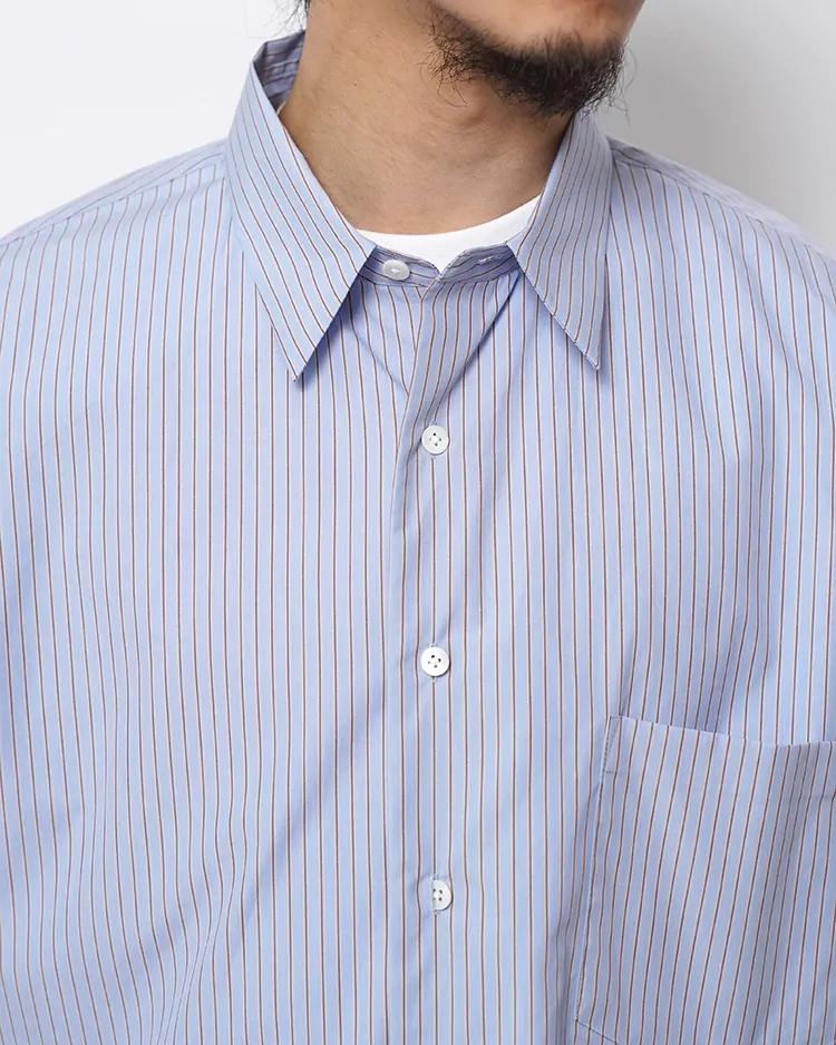 COTTON BROAD STRIPE REGULAR COLLAR S/S SHIRT / SAX-ST