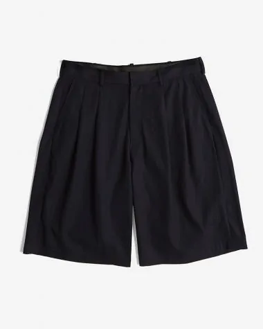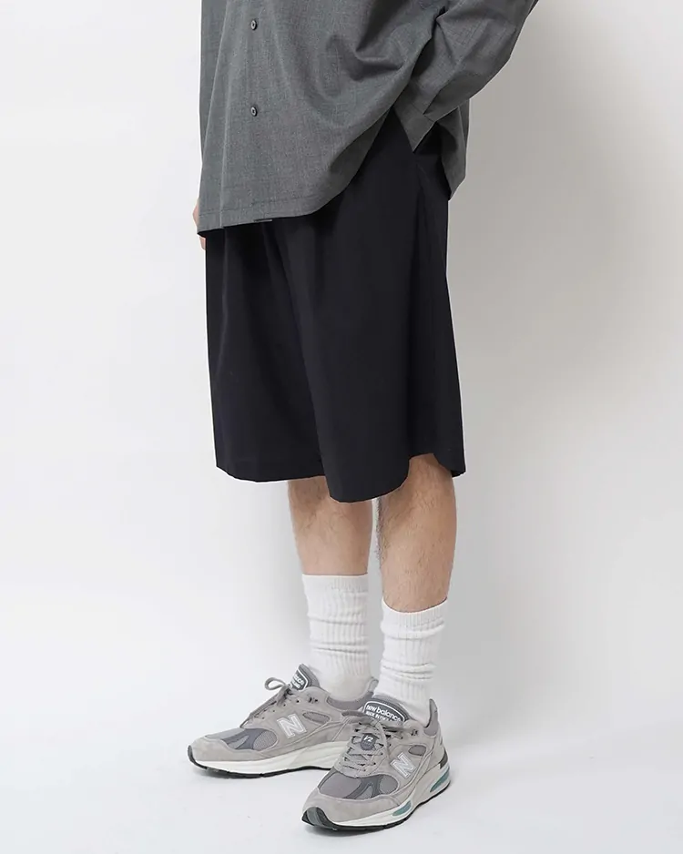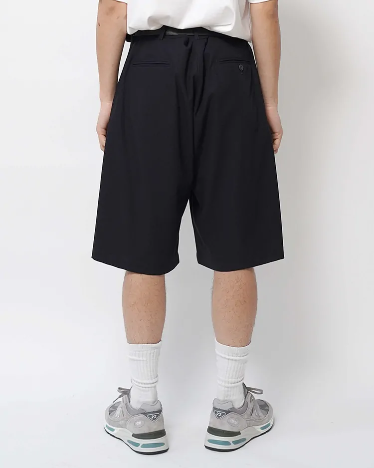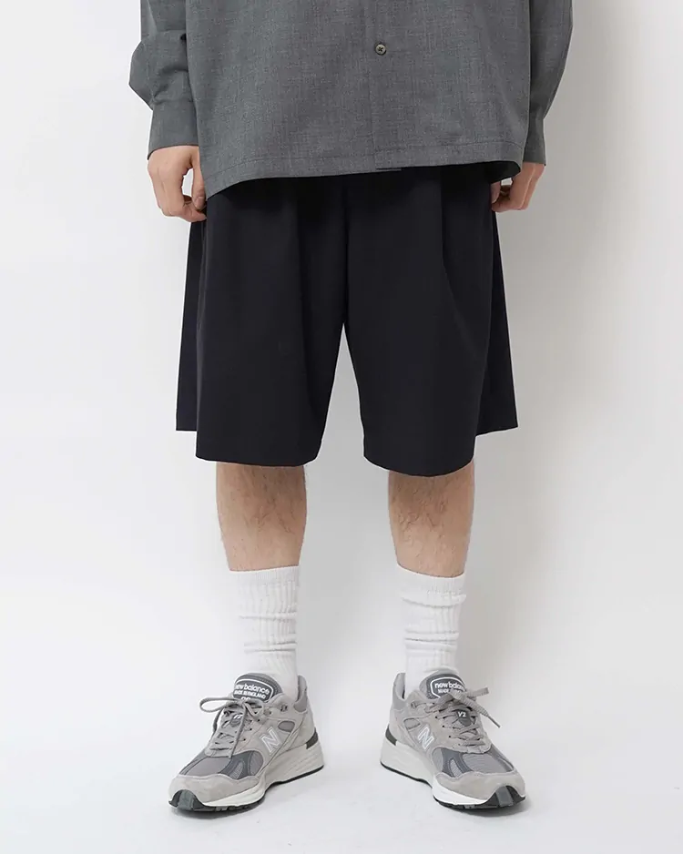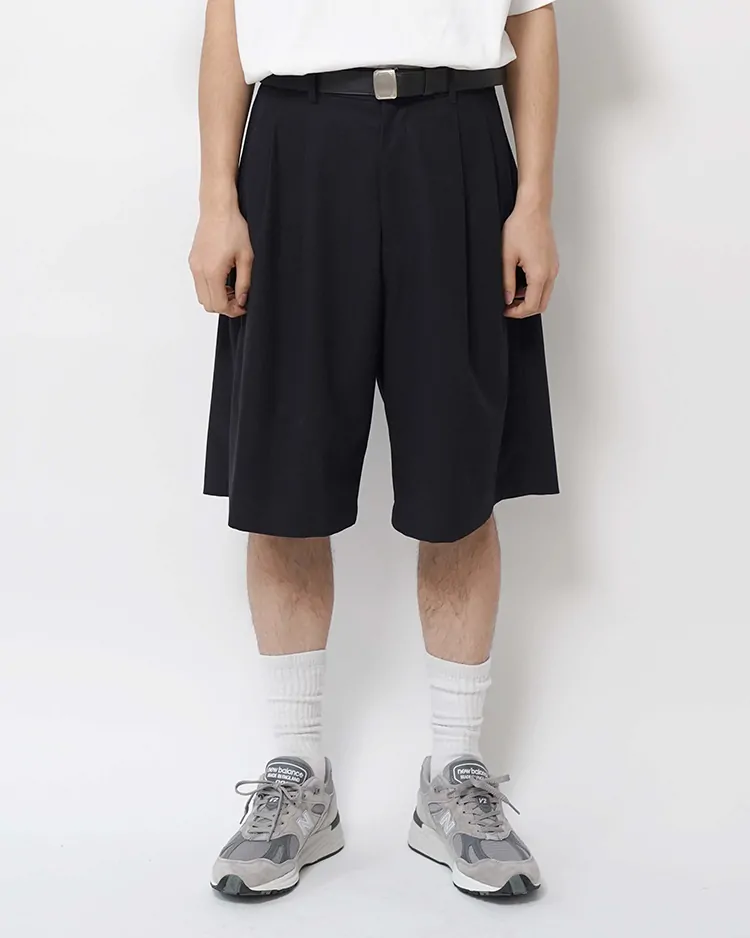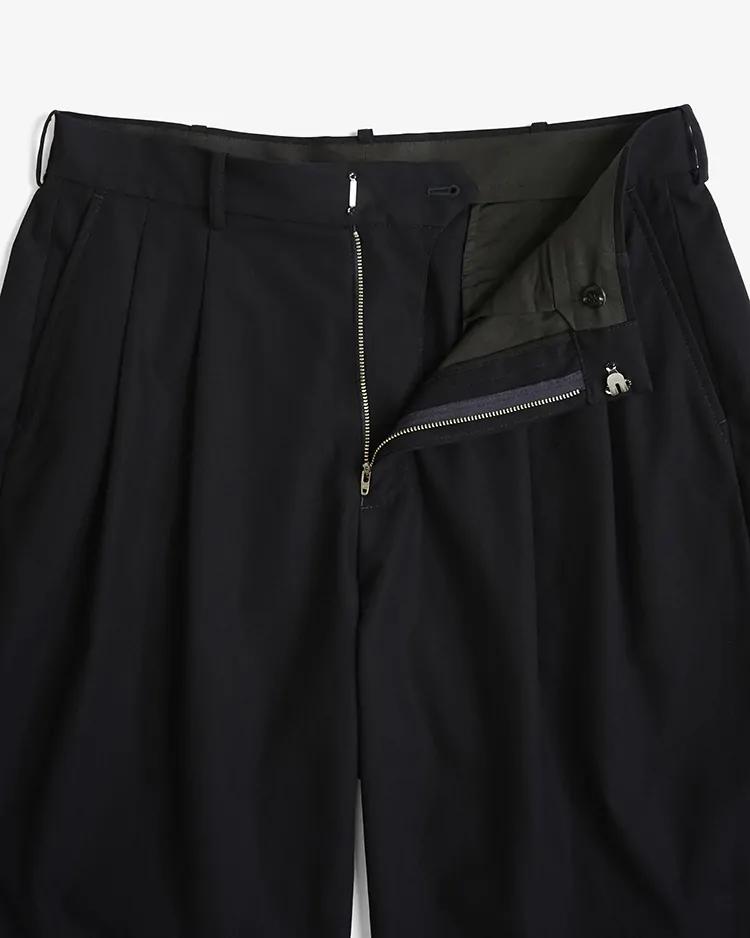 SUPIMA COTTON TWILL TWO TUCKS WIDE SHORTS / NAVY