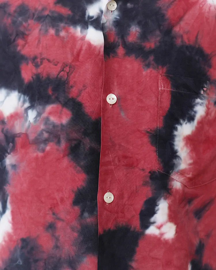 本来はハッキリとした柄を描くのに適した技法ですが、「CHUSEN DYE」では染色の際、あえて生地にシワを寄せ、そこに染料を注ぐことで、独特の美しい「まだら模様」になるよう仕上げています。