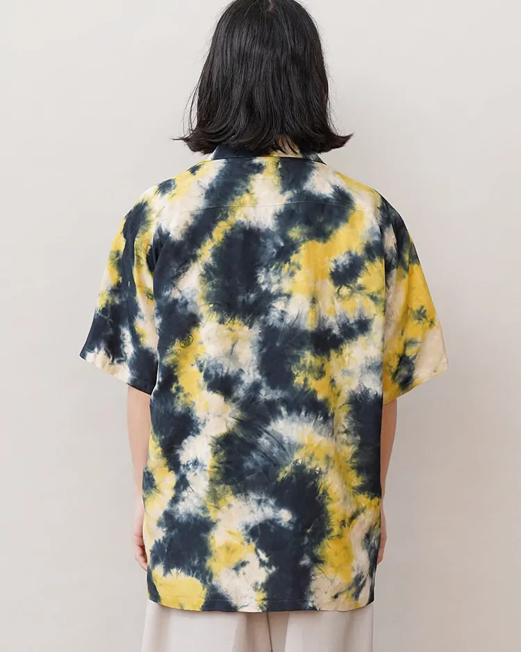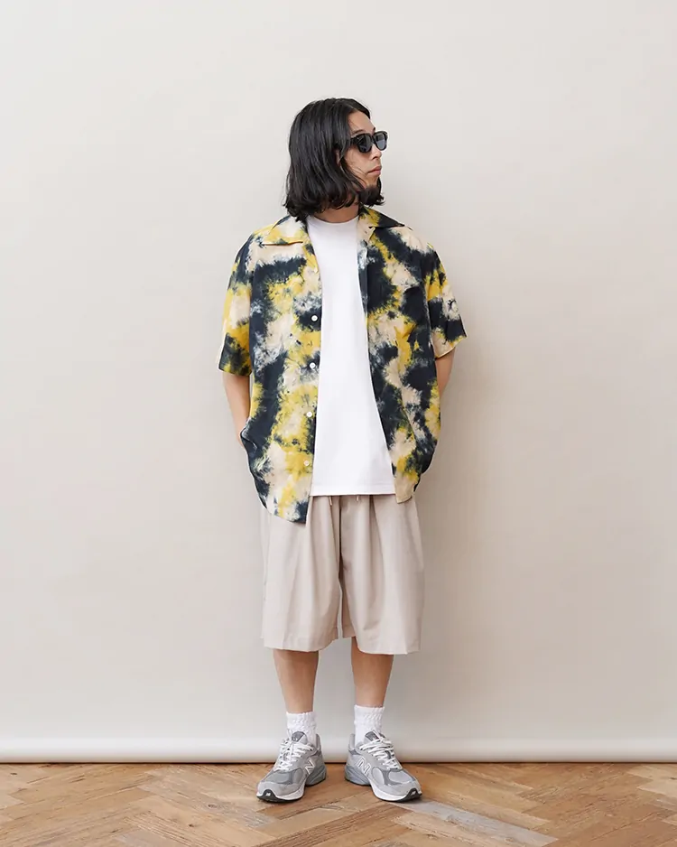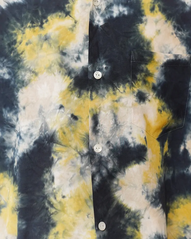 本来はハッキリとした柄を描くのに適した技法ですが、「CHUSEN DYE」では染色の際、あえて生地にシワを寄せ、そこに染料を注ぐことで、独特の美しい「まだら模様」になるよう仕上げています。