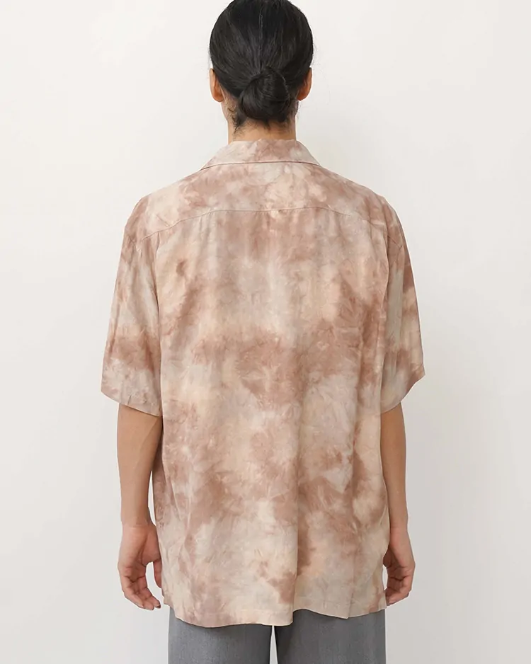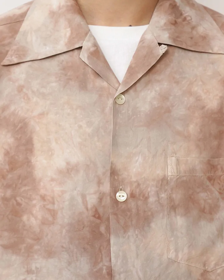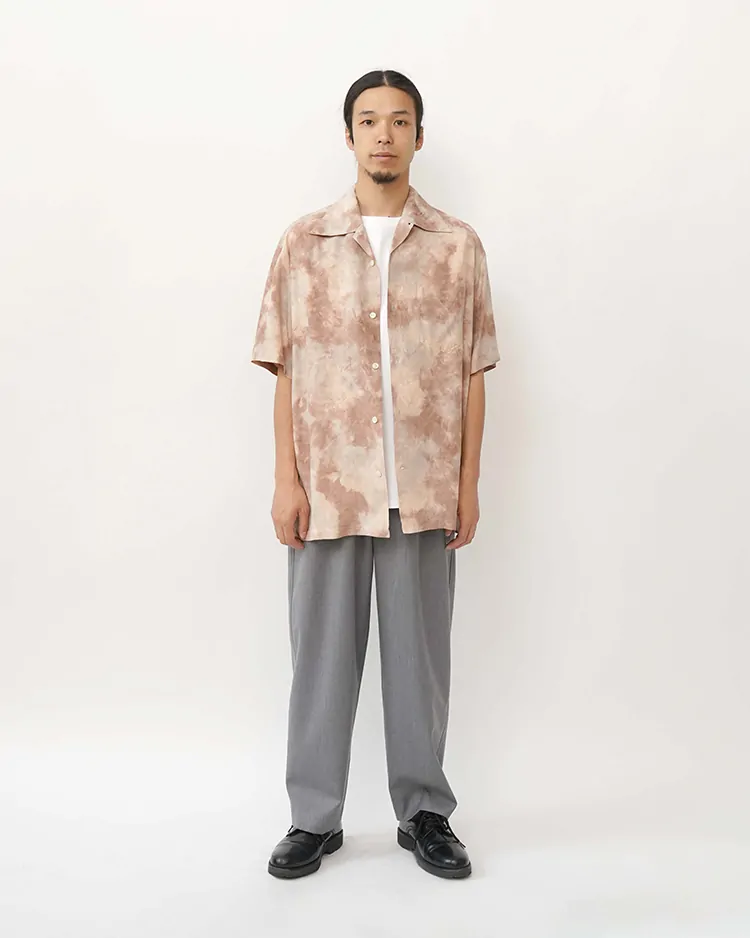 本来はハッキリとした柄を描くのに適した技法ですが、「CHUSEN DYE」では染色の際、あえて生地にシワを寄せ、そこに染料を注ぐことで、独特の美しい「まだら模様」になるよう仕上げています。