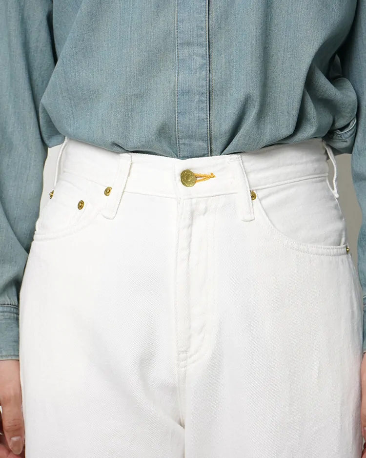 このハイライズ、ワイドレッグのノンストレッチジーンズは、気になる部分を補いながら、女性が自分の身体を美しく思えるようなシルエットにデザインされています。腰まわりはレギュラー、ヒップ、太もも、足首はリラックスフィット、バッグベルトでウエストの調整可能。