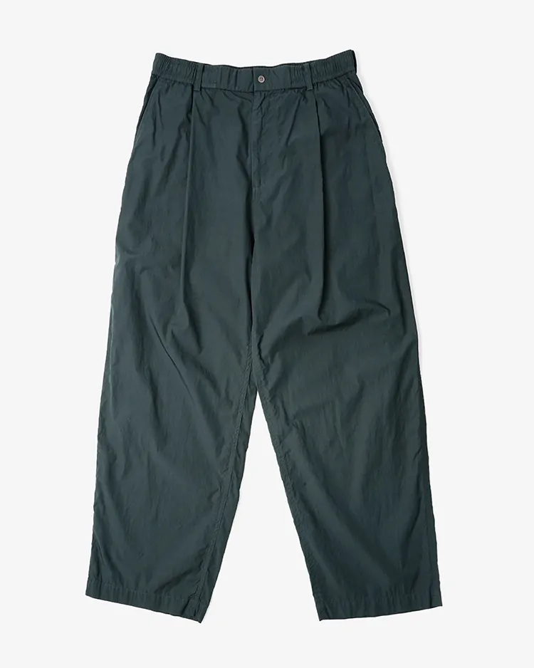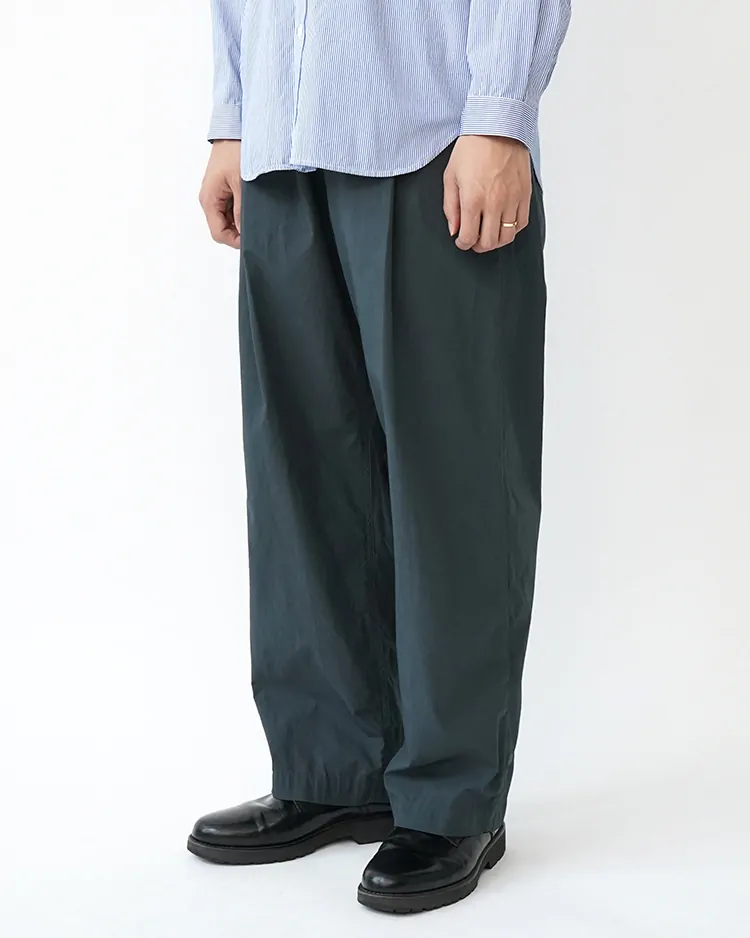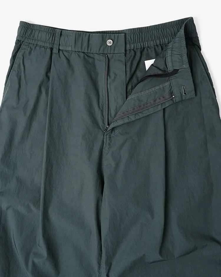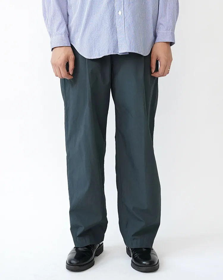 SHRINK COTTON LAWN LOOSE FIT PANTS / DK.GREEN