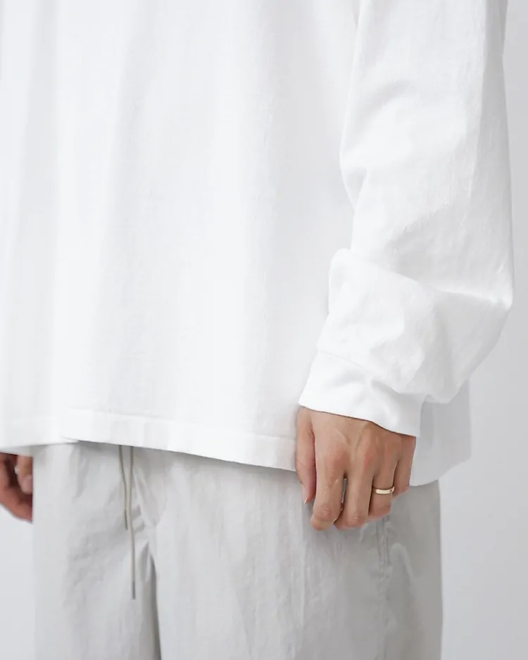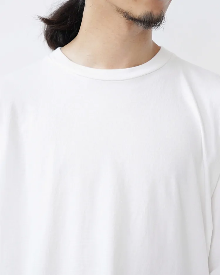しっかりと度詰めされたエメラルド天竺生地を使用し、耐久性があり透けづらい生地になります。こちらはDice&Dice別注の商品になります。