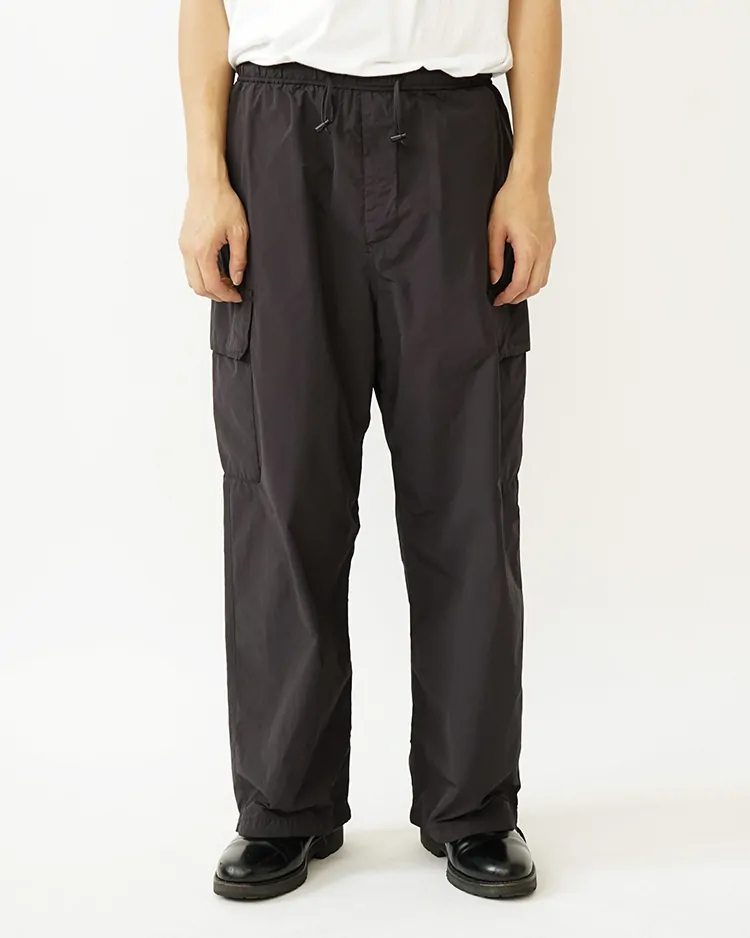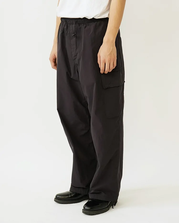 フレンチミリタリーのパンツのシルエットをベースに作成したユーティリティーパンツ。ウエストにはアジャスターが付いており、簡易的に調整が可能です。また、裾のスピンドルを絞ることで、違ったシルエットを楽しめます。シワになりにくいので持ち運びにも便利で、速乾性もありイージーケアです。