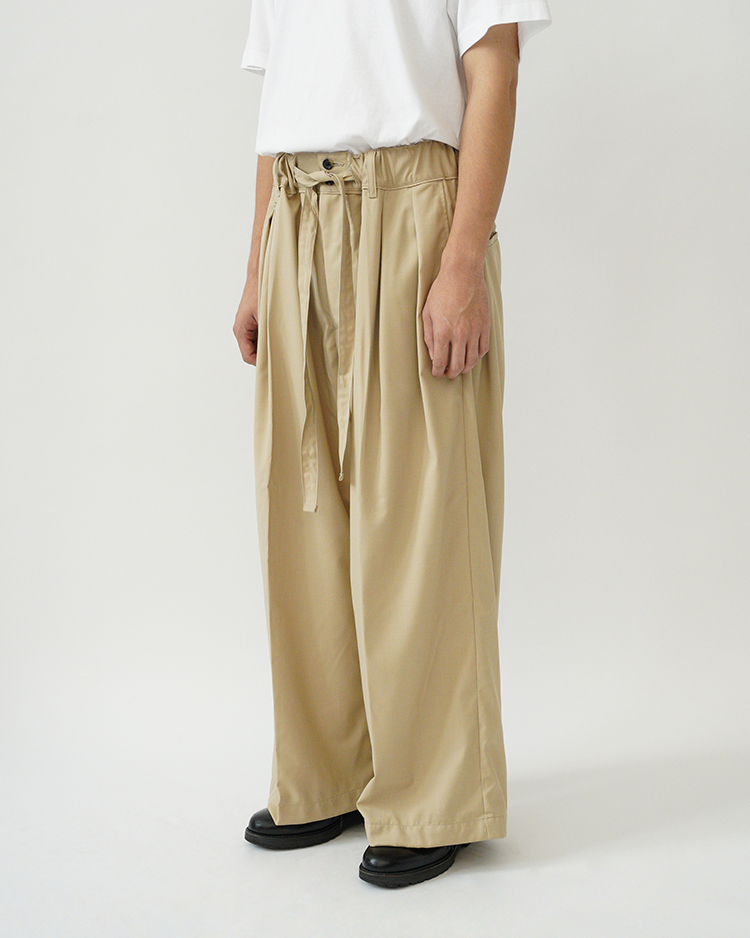 シーズンレスでオールシーズン着用可能なシリーズとなっております。オリジナルのハカマパンツをより進化させたエッセンシャルコレクションの代表となるハカマパンツ。太いまままっすぐ落ちるストレートが特徴です。 今回のモデルはシルエット感を初代のものとし、さらに強度とウエスト周りのイージーさをアップデート。トロピカルウールの持つ上品なドレープ感でより洗練された仕上がりとなりました。