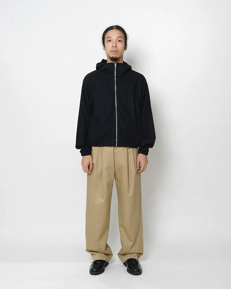 シルエットはワイドなワタリ幅を維持しつつ裾にかけてわずかにテーパードをかけ、自然なたるみを持たせました。