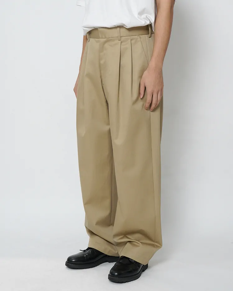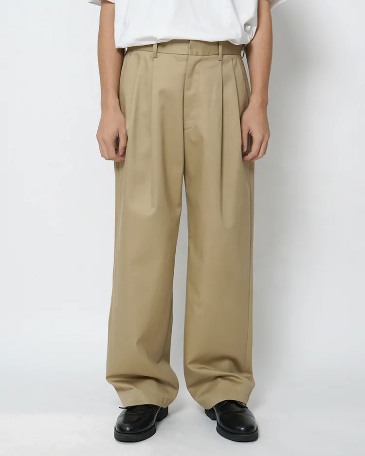 WESTPOINT CHINO TWO-TUCK WIDE SLACKS / BEIGE