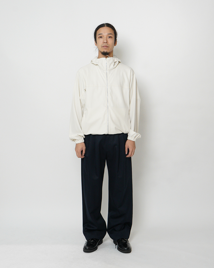 シルエットはワイドなワタリ幅を維持しつつ裾にかけてわずかにテーパードをかけ、自然なたるみを持たせました。