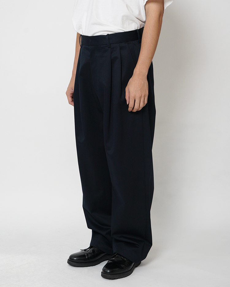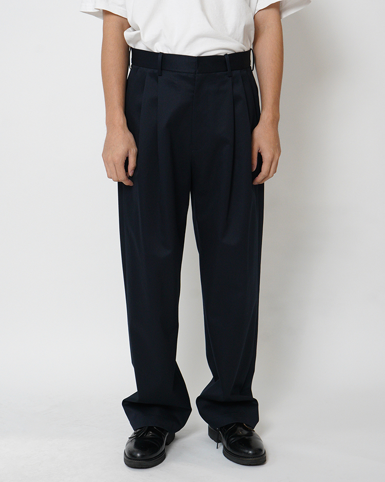 WESTPOINT CHINO TWO-TUCK WIDE SLACKS / D.NAVY