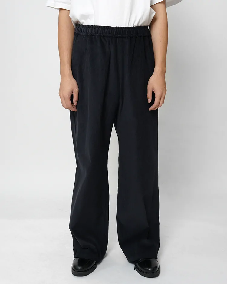 リラックスウェアのような穿き心地を実現するワイドストレートシルエットのドローストリングイージーパンツです。