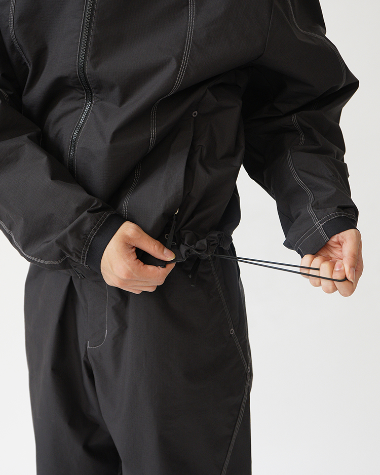 花のつぼみや種子から着想を得たフォルムで全体を縦のパネルで構成する、Goldwin 0のSeed Jacket のコンセプトを発展させたスタンドカラーのジャケット。コーティングを施した、タフなコットンポリエステル高密度リップストップ素材を使用。ハリ感のある素材によって、特徴的なシルエットを描きます。