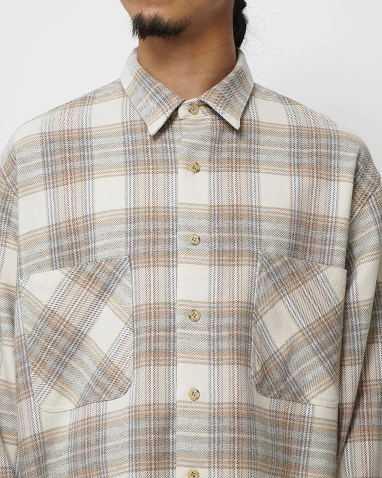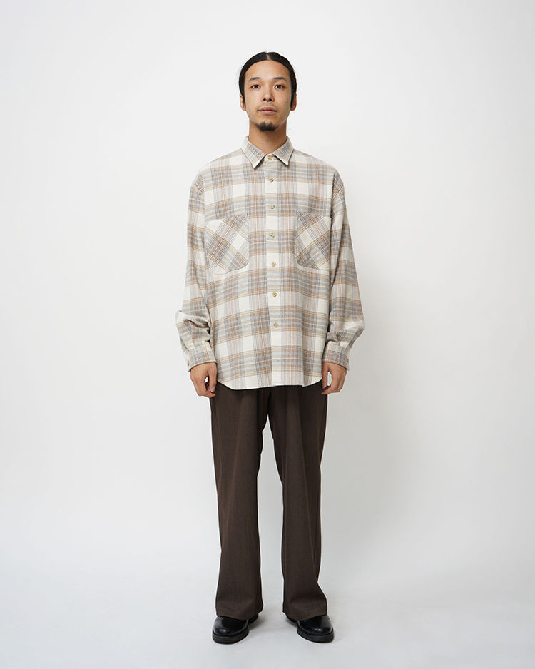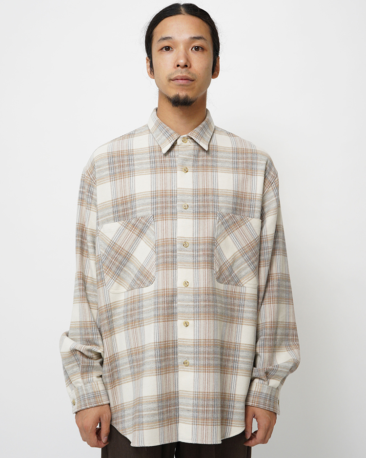 COTTON WOOL KERSEY REGULAR COLLAR L/S SHIRT / OFF WHITE