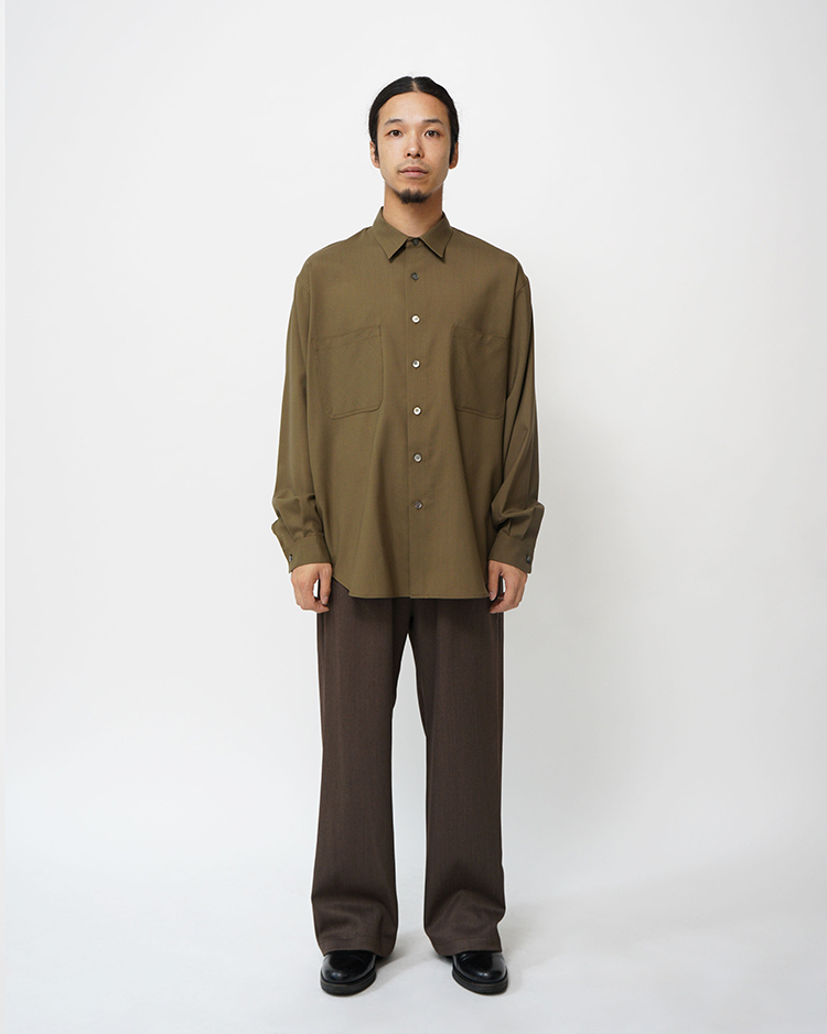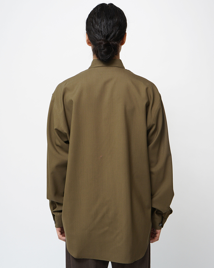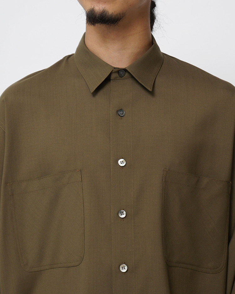 WOOL TROPICAL REGULAR COLLAR L/S SHIRT / KHAKI