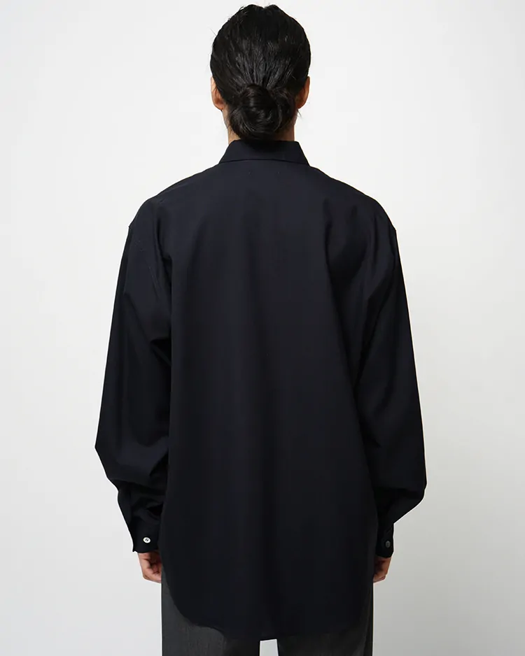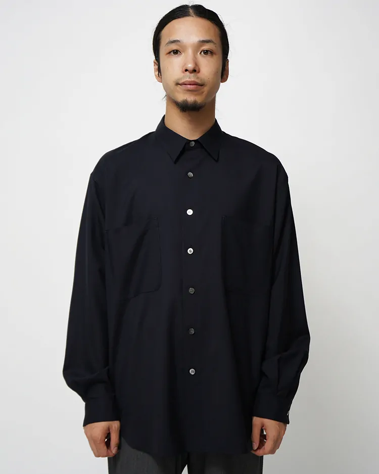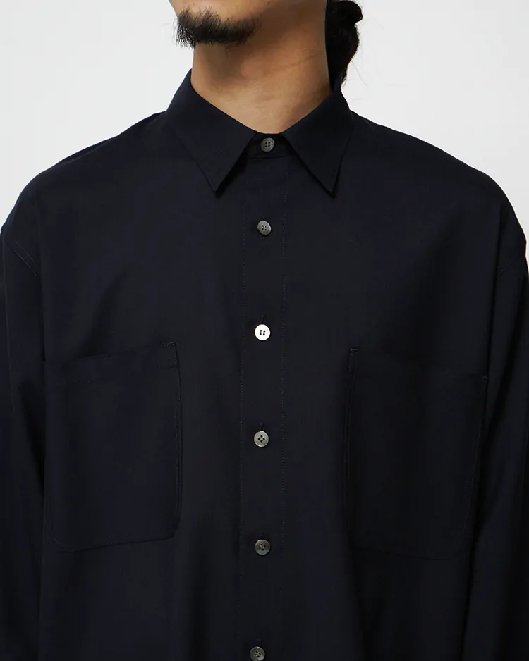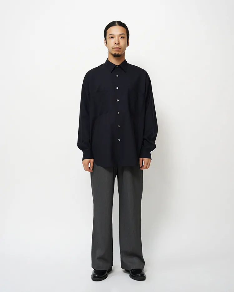 WOOL TROPICAL REGULAR COLLAR L/S SHIRT / NAVY