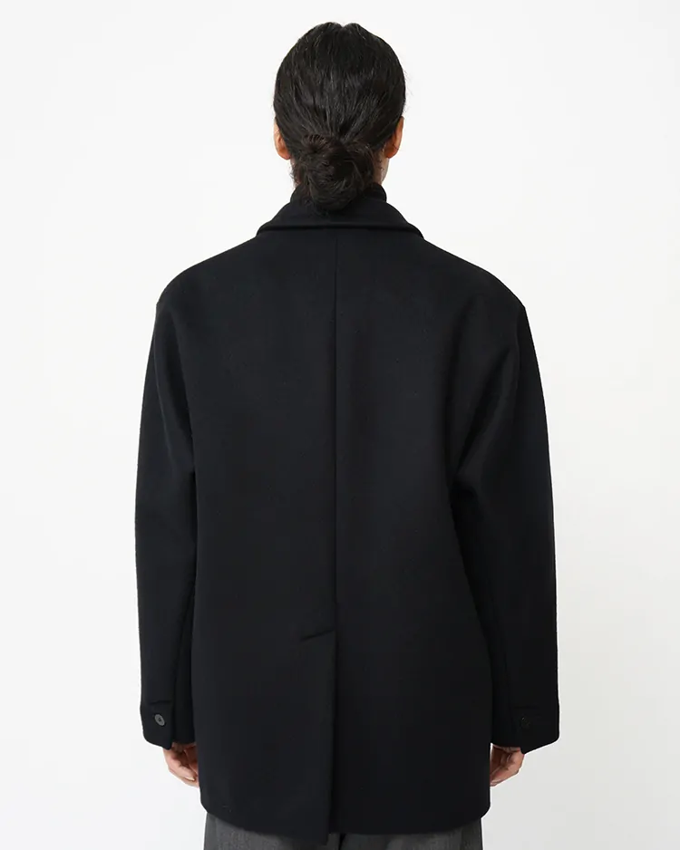 ビーバー仕上げのウール素材を使用した、オーバーサイズのブレザー。