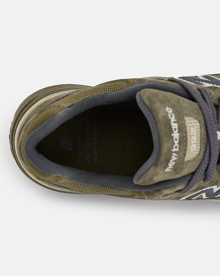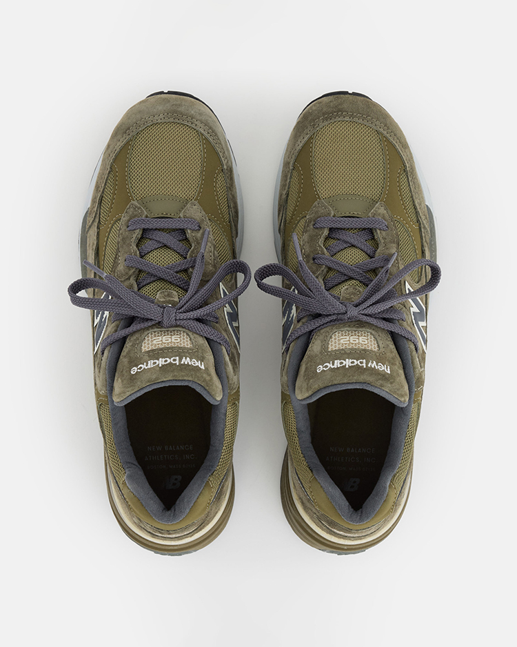 スエード、メッシュ、シンセティック素材を組み合わせた上質なマテリアルに、ダークカモやコバートグリーンといったアーストーンのグリーン系カラーを採用しています。