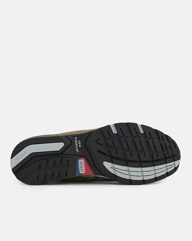 992は、ヒールと前足部に搭載されたABZORBクッショニングが衝撃を効果的に吸収し、優れた快適性を提供します。さらに、ENCAPとC-CAPを組み合わせたミッドソールが安定性と耐久性を両立し、長時間の着用にも対応。光を反射するリフレクティブ素材を随所に配置することで視認性を高め、NDuranceラバーアウトソールが優れた耐摩耗性を実現しています。アッパーには通気性に優れたメッシュを採用し、ピッグスエードやシンセティック素材のオーバーレイを組み合わせることで、上質さと機能性を兼ね備えた仕上がりとなっています。