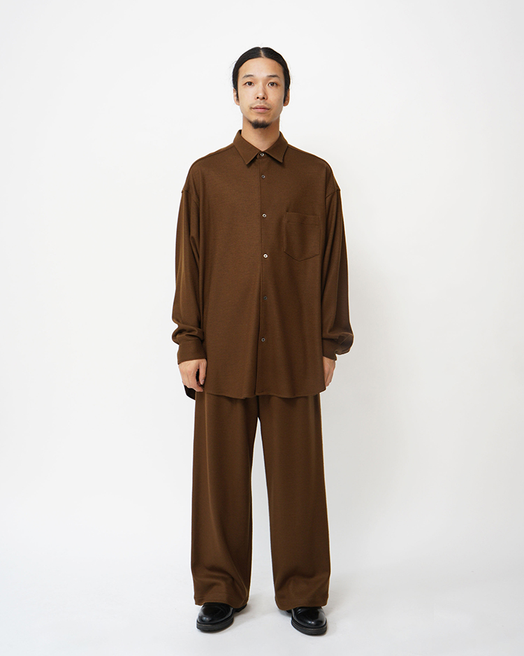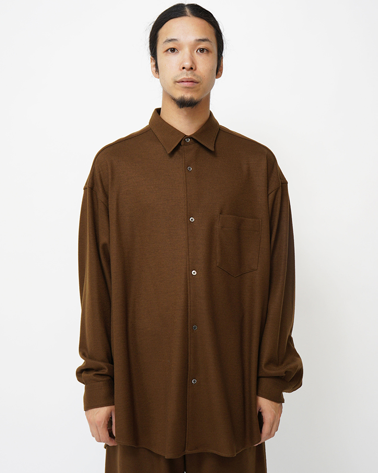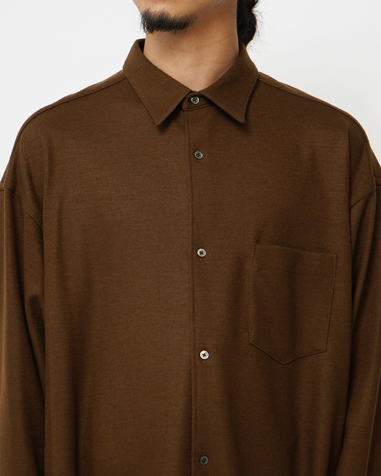 - Wool Smooth Flannel Oversized Regular Collar Shirt / BROWN