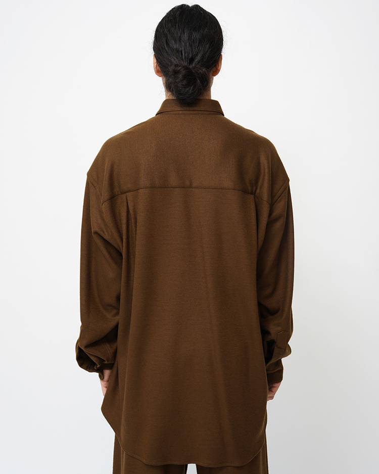 Wool Smooth Flannel Oversized Regular Collar Shirt / BROWN