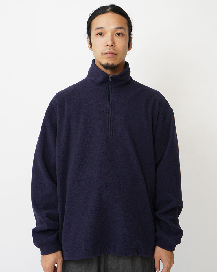 リサイクルポリエステルを使用した暖かく軽量で着心地の良いマイクロフリース。伸縮性があるので動きやすく、重ね着にも便利な程よい厚み。保温性はありながらも不快な蒸れは外に排出されるので、アクティブシーンでも活躍する素材です。ワークウェアをベースとしたハーフジップデザイン。裾アジャスター付き。