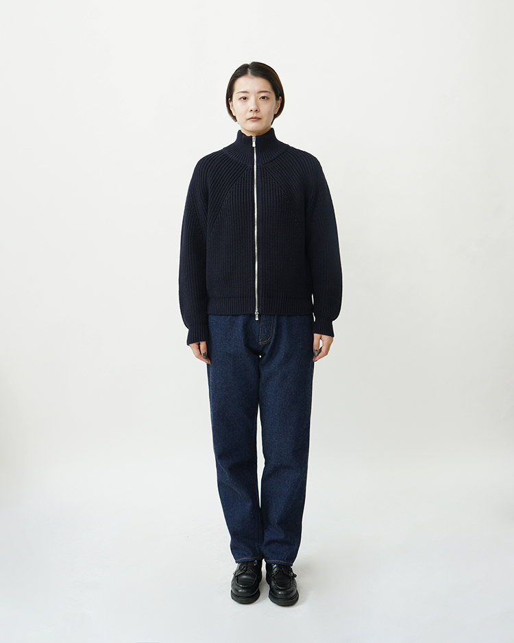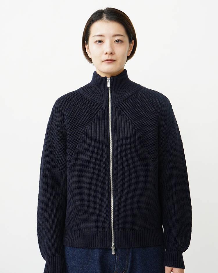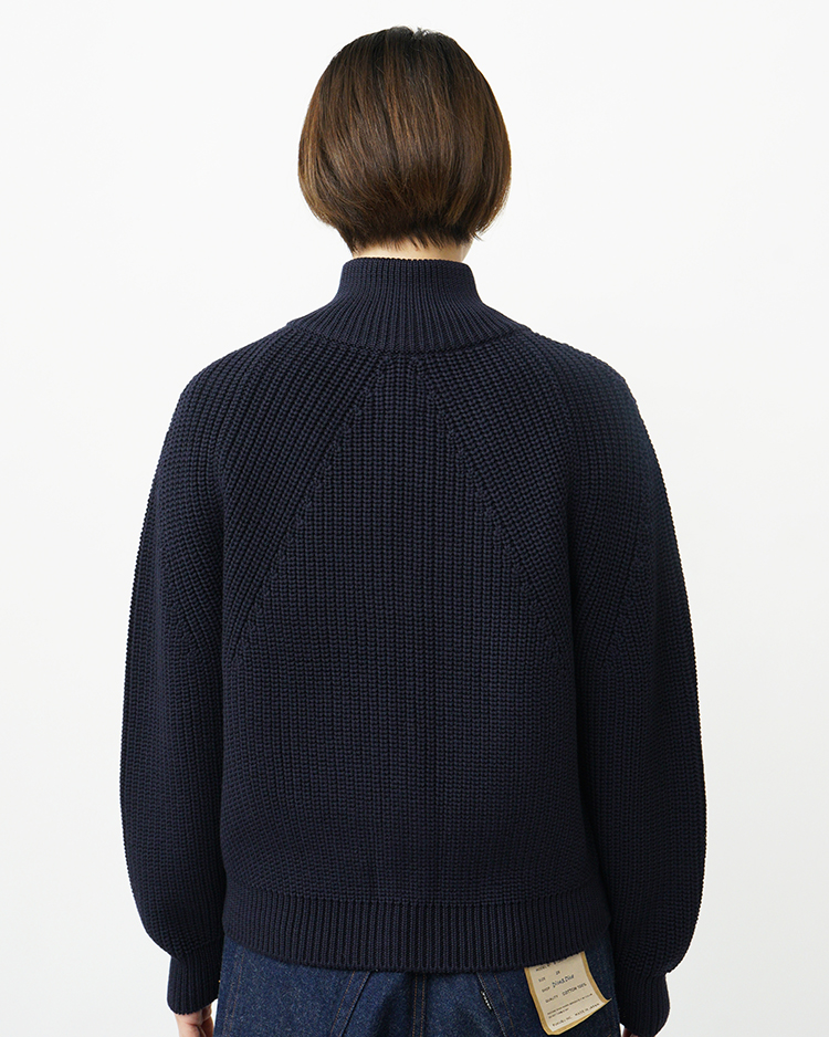 SIGNATUREシリーズの為に開発したSOLIDWOOLという糸を使用。ダレにくく、毛玉になりにくい商品で編み目の立体感が特徴。BATONERらしい象徴的な編み柄が際立つ商品。今年は裾リブを加え、よりすっきりとしたフォルムに仕上げています。