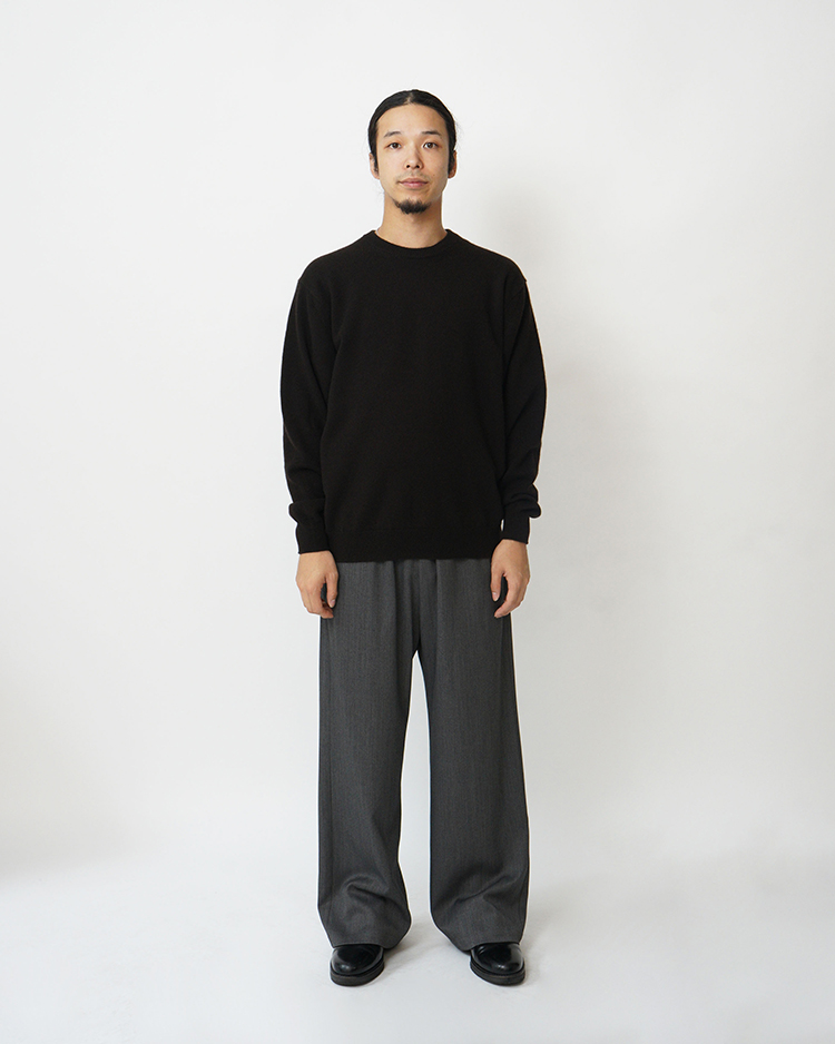 良質なカシミヤヤギが育つ寒暖差の激しい地域から採取した原料を、更に均一なクオリティーの部分のみを糸にし編み立てたクルーネックニットです。