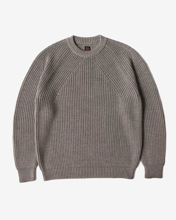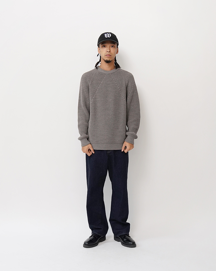 SOLID WOOLという独自に開発した糸を使用し、キレイな編目・ダレない強度・毛玉ができにくい・チクチクしないという理想のミドルゲージニットを目指した商品となっております。