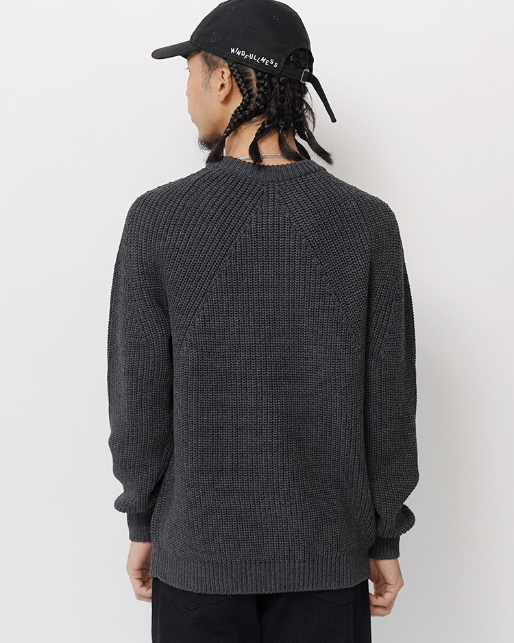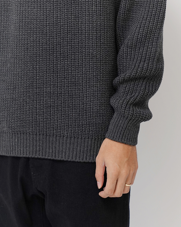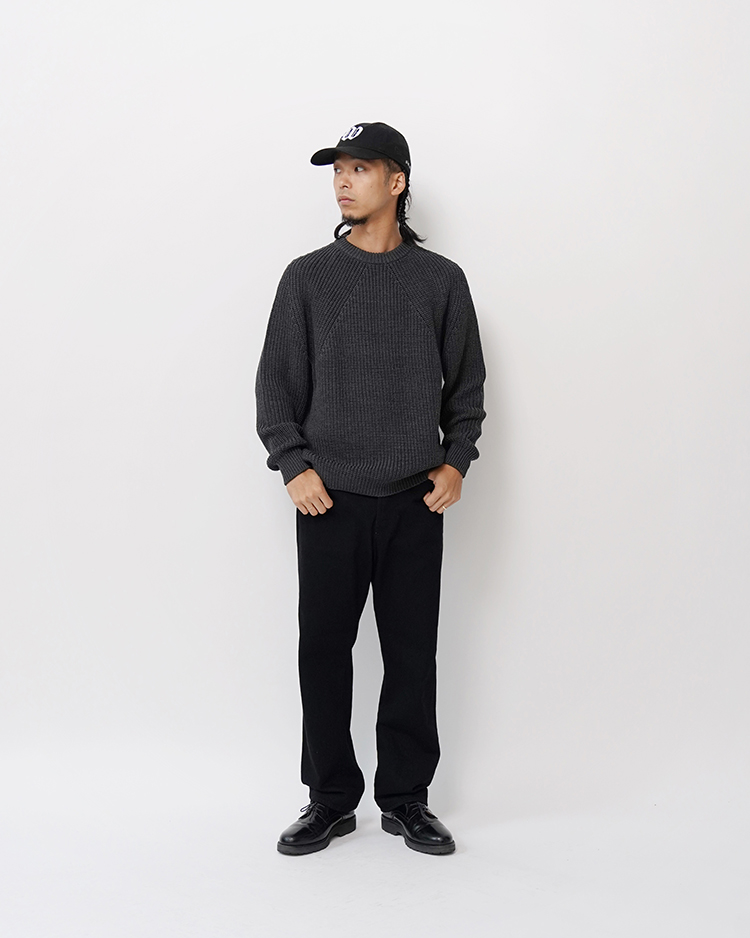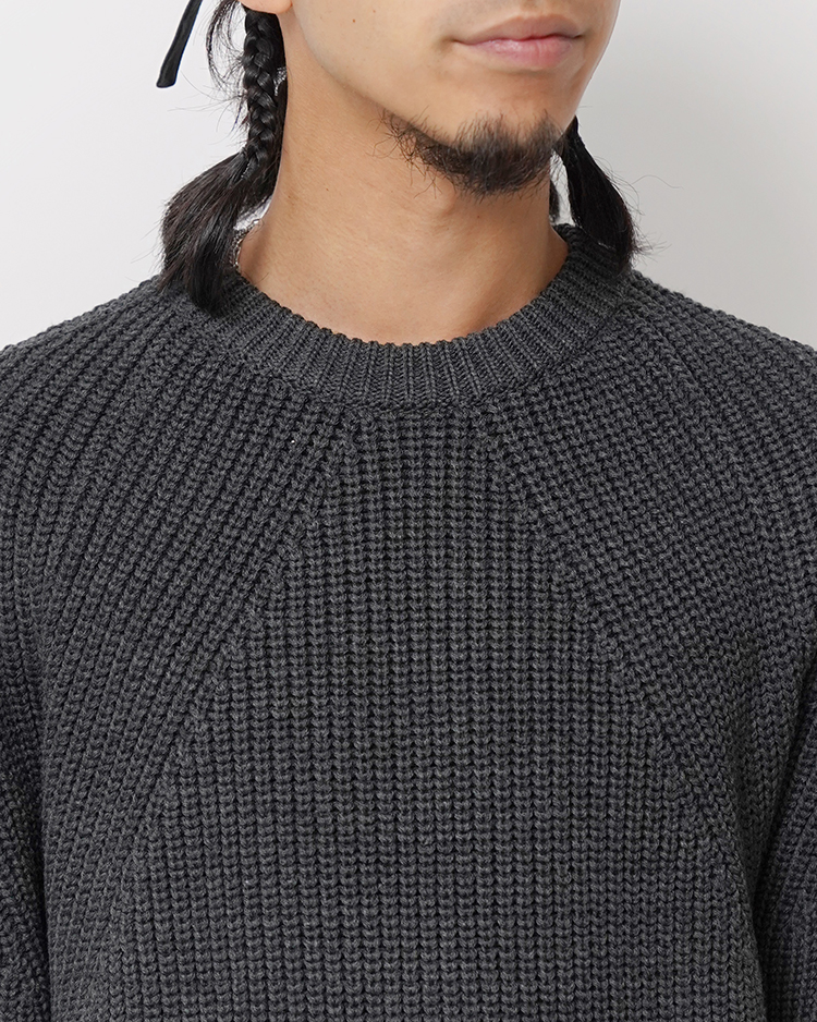 SOLID WOOLという独自に開発した糸を使用し、キレイな編目・ダレない強度・毛玉ができにくい・チクチクしないという理想のミドルゲージニットを目指しました。