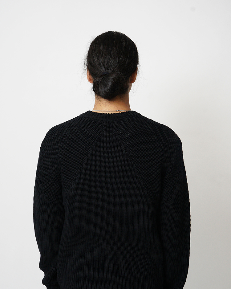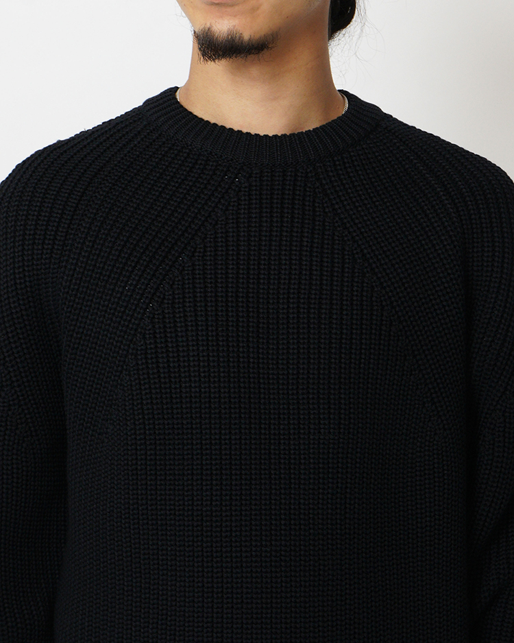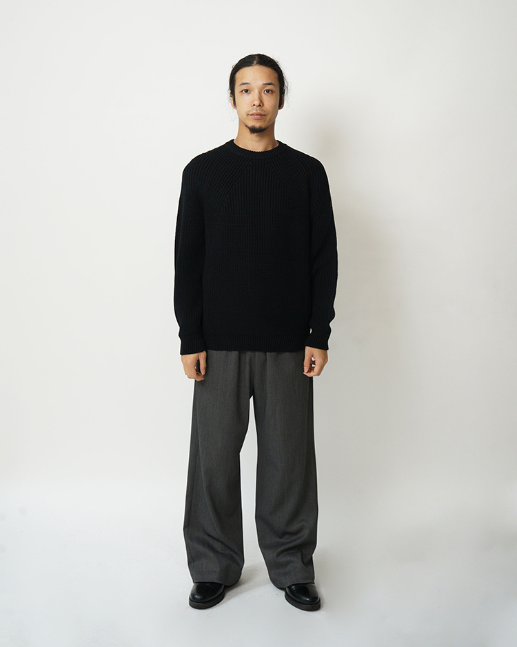 SOLID WOOLという独自に開発した糸を使用し、キレイな編目・ダレない強度・毛玉ができにくい・チクチクしないという理想のミドルゲージニットを目指しました。