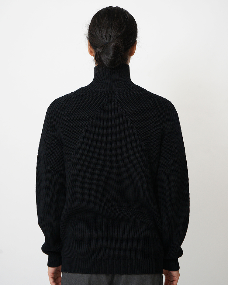 SOLID WOOLという独自に開発した糸を使用し、キレイな編目・ダレない強度・毛玉ができにくい・チクチクしないという理想のミドルゲージニットを目指しました。