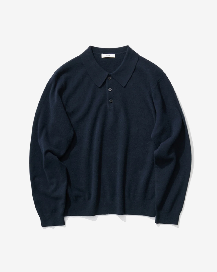 - BABY CASHIMERE POLO SWEATER / NAVY