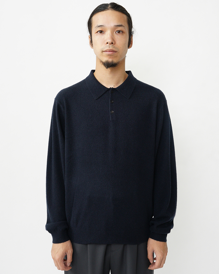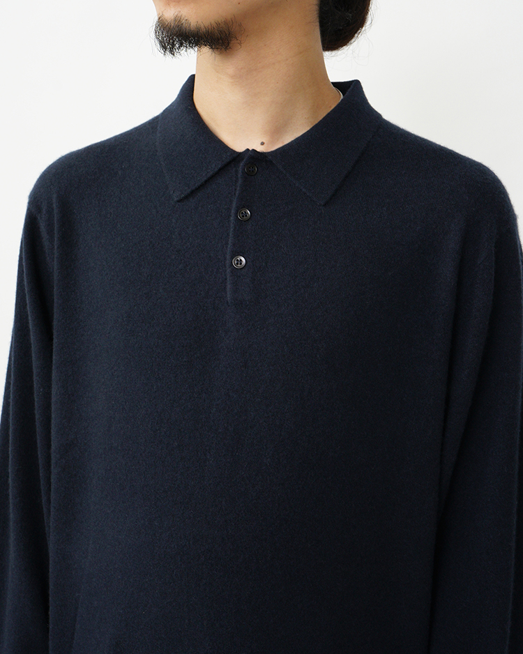 程よいリラックス感が特徴のポロセーター。14ゲージを採用し、限界度目でしっかりとした着心地に仕上げました。衿はリブダブル付けを採用しています。裾リブが適度に締まった、ニットらしいシルエットを採用しています。