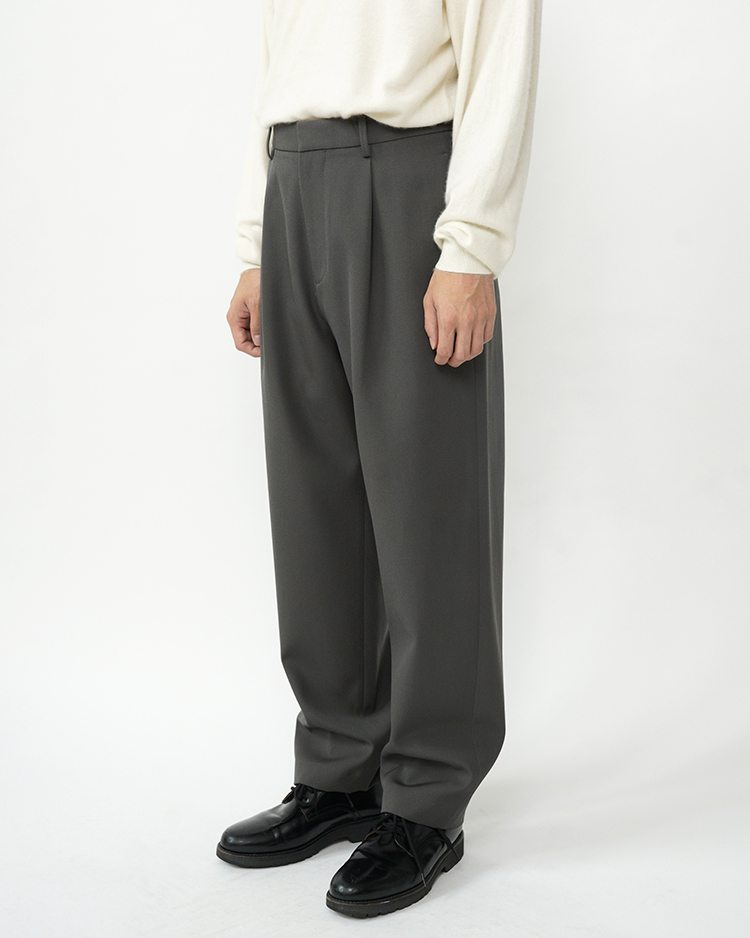 裾に向かいテーパードがかかったシルエットに仕上げたイージーパンツ。スタンダートなシルエットで、様々なシーンで活躍する1着です。