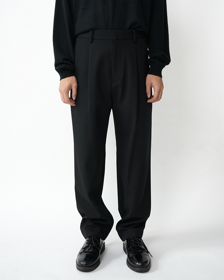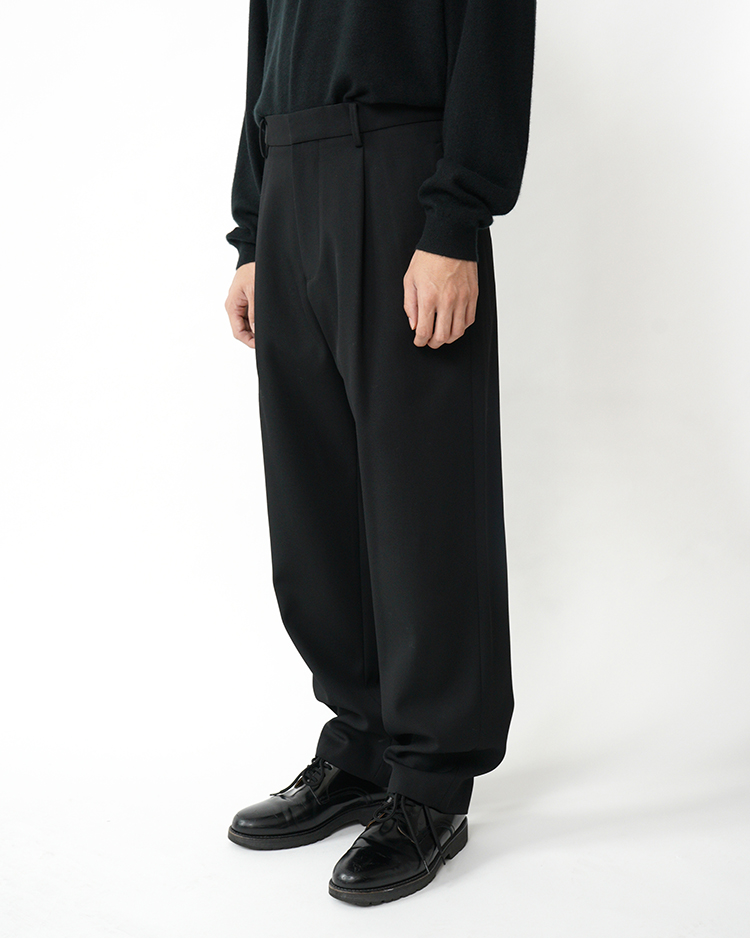 裾に向かいテーパードがかかったシルエットに仕上げたイージーパンツ。スタンダートなシルエットで、様々なシーンで活躍する1着です。