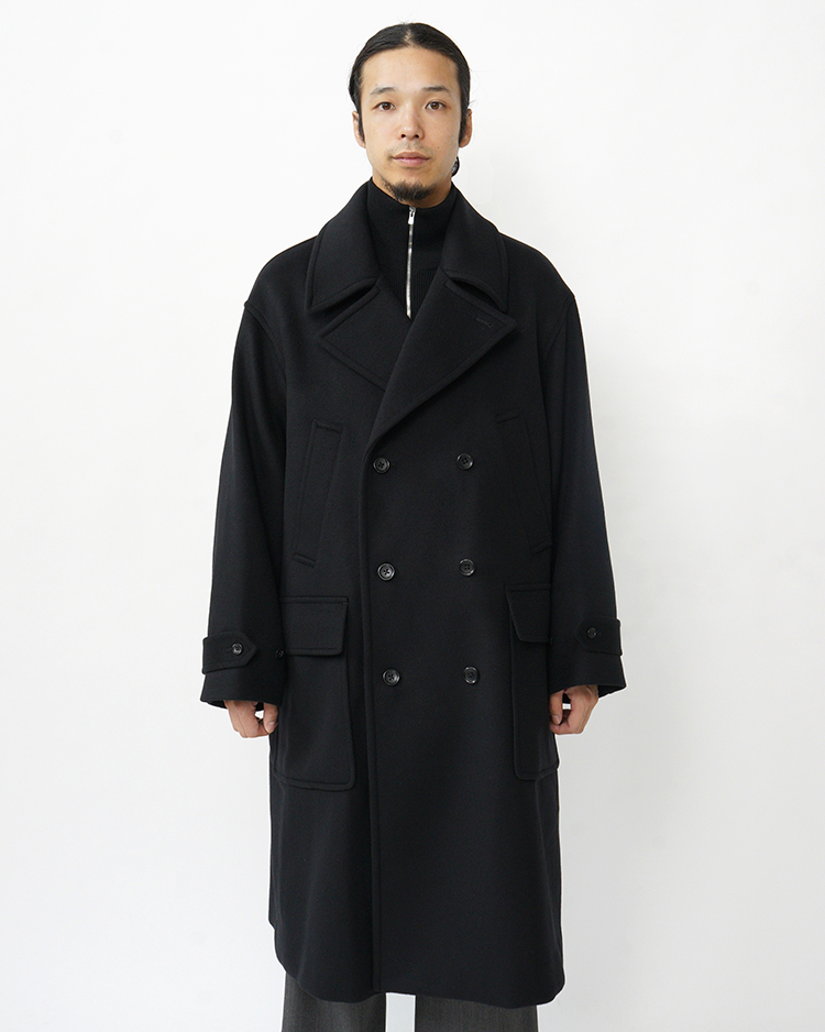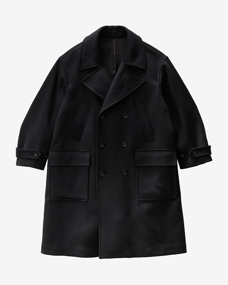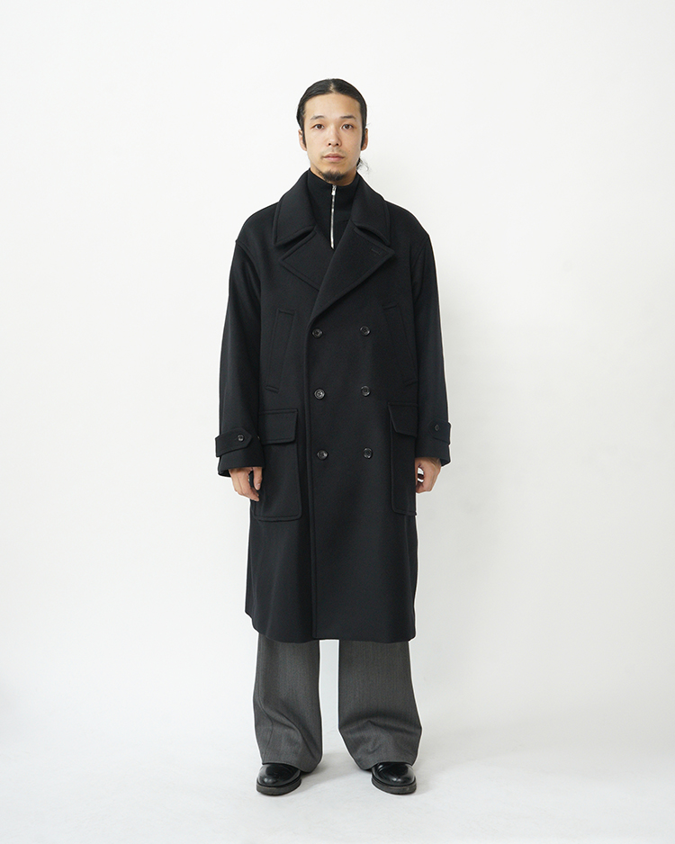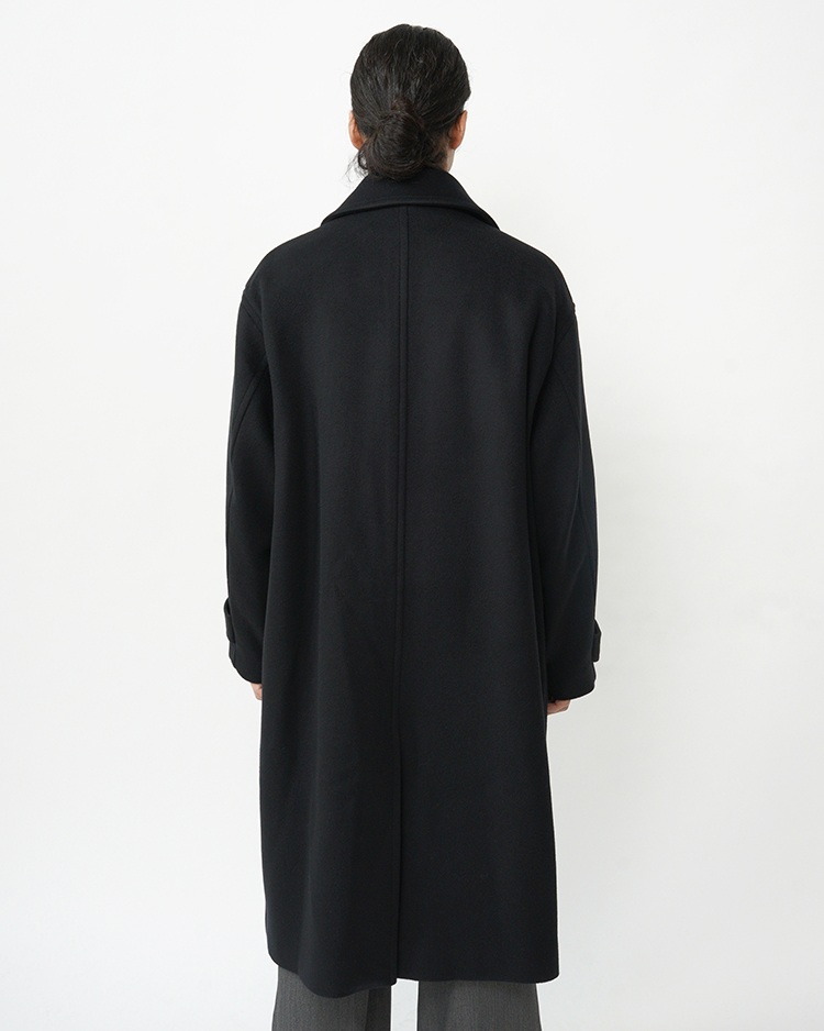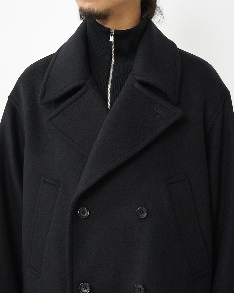 Light Melton Pea Coat / BLACK