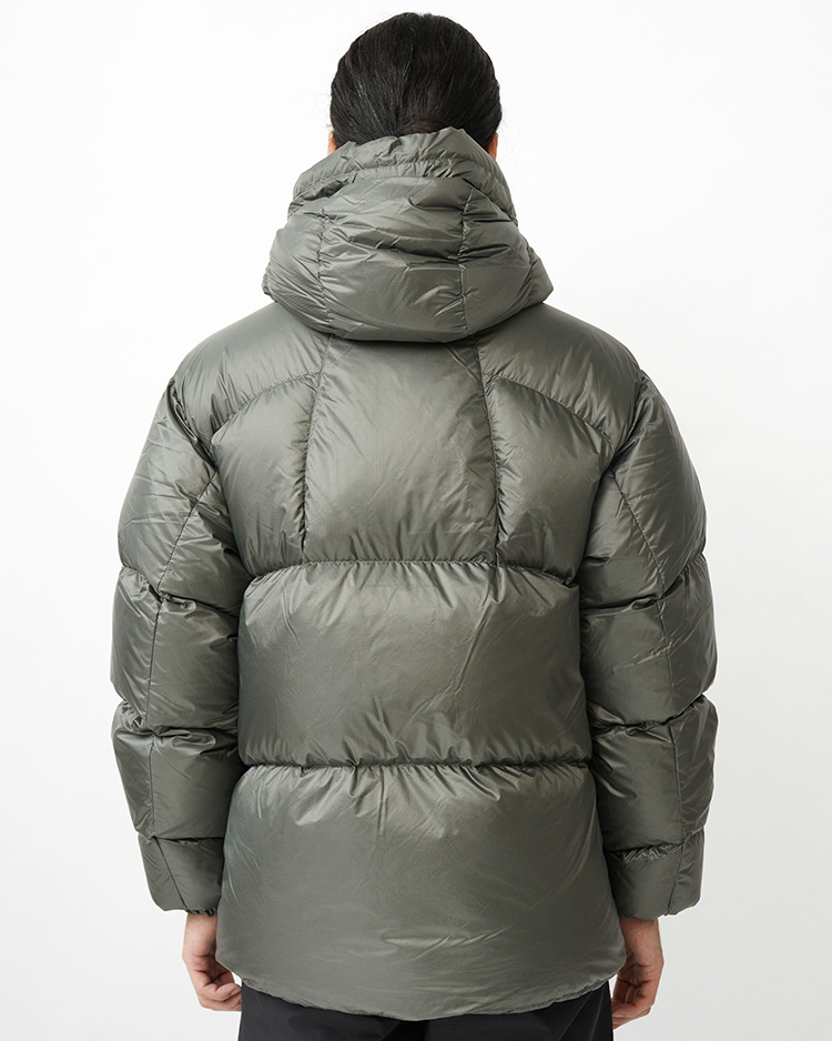 中に封入しているのは、かさ高性と軽量性を両立させた高品質な新毛のダックダウン。高度な洗浄技術によりダウン本来の機能を引き出しているCLEANDOWNです。ダウンのバッフル構造は、ダウンが背中の中心部分に集まる形状になっているため、体幹を効率的に保温。首まわりにもダウンチューブを配し、コールドスポットを少なくしています。