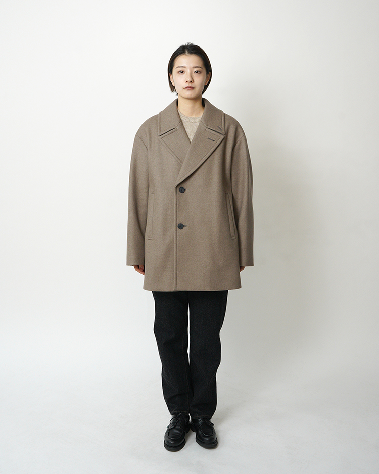SUPER 120S DOUBLE MELTON SEMI DOUBLE SHORT COAT / TOP BROWN
